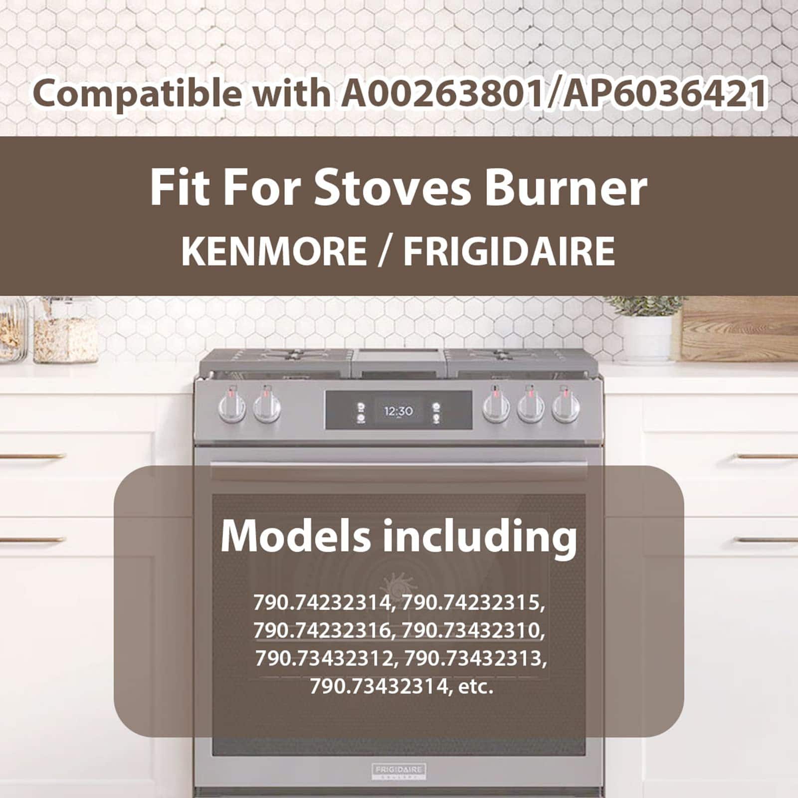 1. La pieza de repuesto para estufa de gas necesita ser compatible con su quemador de estufa Kenmore/Frigidaire, A00263801/AP6036421 y más.