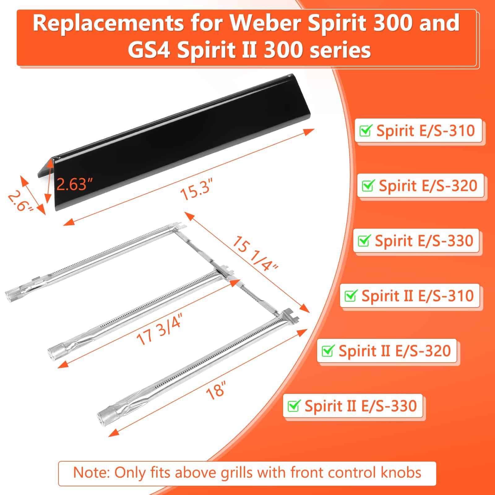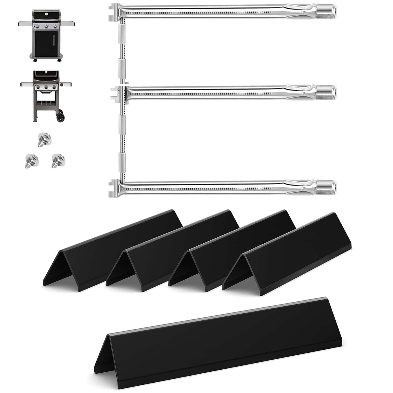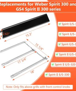 Conjunto de quemadores de alta calidad y barras flavorizer diseñados para adaptarse perfectamente a las parrillas Weber Spirit E310 y otros modelos compatibles. Crafted with 20GA thick steel, these flavorizer bars are sturdier and longer-lasting compared to thinner 22GA alternatives. They offer enhanced protection for your burners, ensuring reliable performance during countless grill sessions. A dependable upgrade for your Weber Spirit Replacement Parts. Featuring a high-temperature resistant black porcelain enamel coating, these flavorizer bars are designed to prevent flaking and corrosion over time. They also add a subtle smoky flavor to your food, making them a standout addition to your Flavorizer Bars for Weber Spirit E310. The burners are made from high-quality SUS304 stainless steel, offering superior corrosion resistance, heat resistance, and durability. This ensures consistent performance and makes them a reliable replacement for your Weber Spirit Grill Parts. Replacing your old burners and flavorizer bars with this set transforms your grill�s performance, improving heat distribution and efficiency. Experience evenly heated cooking surfaces and vibrant flames, bringing your grill back to life with these Weber Spirit E310 Flavorizer Bars. The burners ensure even and efficient flames, quickly heating the grill and retaining heat for consistent cooking results. A simple adjustment to the air intake delivers a perfect blue flame, optimizing your grilling experience with Weber Spirit 2 Flavorizer Bars. Crafted to deliver reliable performance and durability, this set provides a practical and cost-effective option for replacing or upgrading your Weber Spirit E310 Grill Parts. Please compare the size and model of your original parts to ensure a proper fit before placing your order.