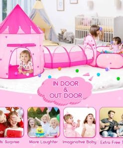La tienda de juguetes para niñas es lo suficientemente grande para que su pequeño la comparta con sus hermanos, amigos y guarde sus juguetes para una diversión grupal definitiva. La tienda interior es perfecta para niños a los que les gusta el espacio o las cosas de naves espaciales, haga que sus hijos imaginen ser astronautas y sientan los misterios del universo. Puede ser utilizada en interiores o exteriores, en cualquier lugar donde quiera que sus hijos jueguen. Puede conectar un túnel y tiendas adicionales juntas para crear una ciudad entera. Será uno de los juguetes favoritos de su hijo, para que su hijo imagine ser un astronauta en un mundo espacial. La tienda fortaleza, el túnel pop up y la piscina de pelotas para bebés vienen plegados por separado y empacados dentro de un estuche compacto con cremallera y asa. Puede usarlos de múltiples maneras: