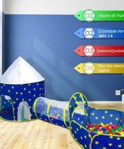 Se puede utilizar en interiores o exteriores, en cualquier lugar donde quieras que tus hijos jueguen. Puedes conectar un túnel y tiendas adicionales juntas para crear toda una ciudad. Será uno de los juguetes favoritos de tu hijo, para que tu hijo imagine ser un astronauta en un mundo espacial.