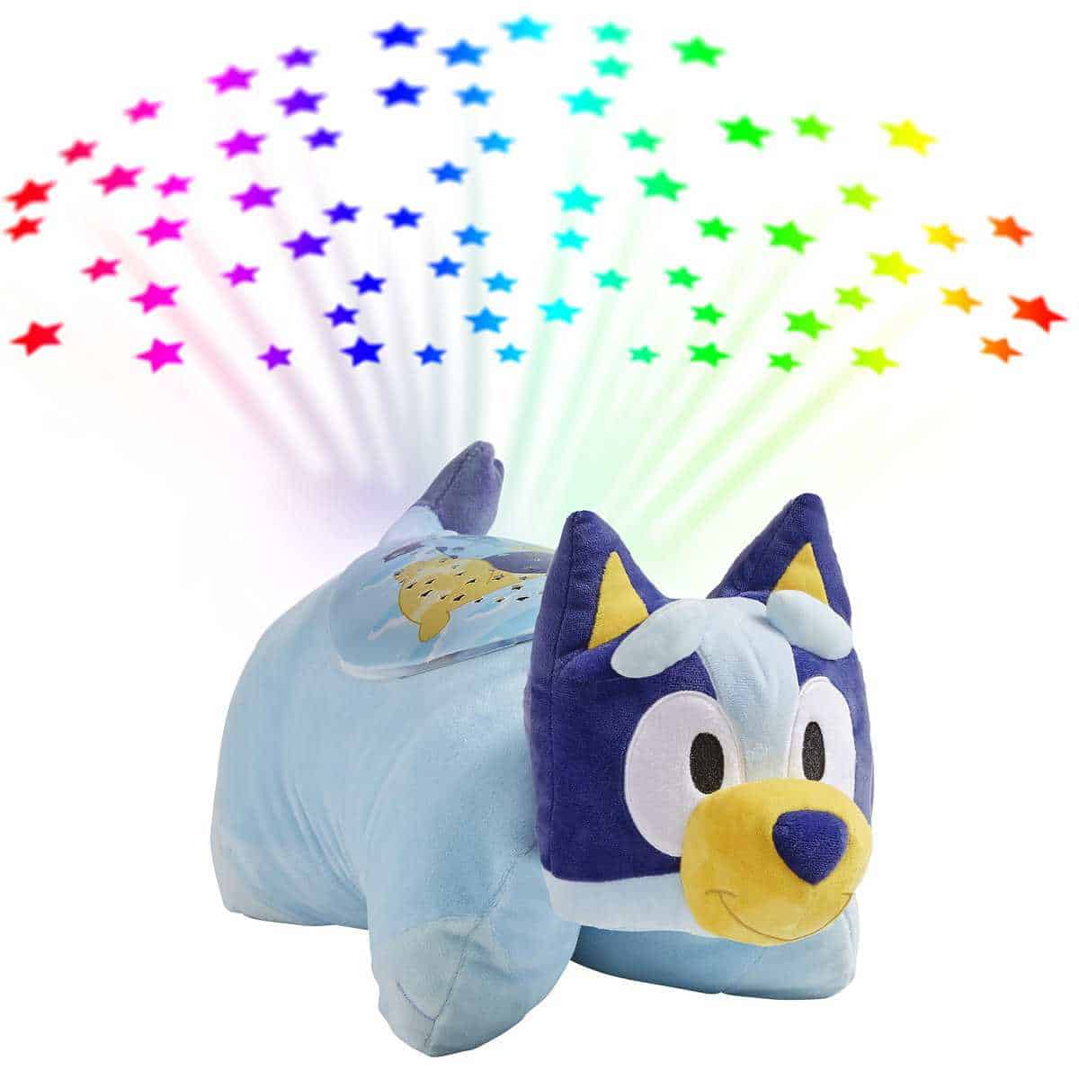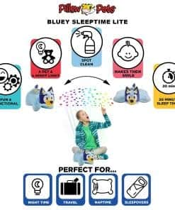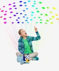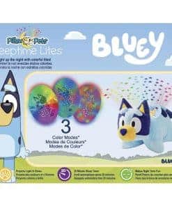 Pillow Pets y BBC Studios presentan al Heeler Bluey australiano más querido del mundo, de la exitosa serie Bluey, en una Sleeptime Lite que proyecta estrellas de colores del arco iris en tu techo. ¡Este compañero de juegos perfecto comienza siendo un amigo divertido con el que jugar y luego se convierte en una relajante luz nocturna. Con tan solo tocar un botón, convierte el techo del dormitorio de tu hijo en un cielo estrellado. El Sleeptime Lite proyecta tres modos de luz de colores del arco iris diferentes que se pueden configurar para cambiar lentamente o rápidamente. También cuenta con un temporizador incorporado que apagará automáticamente la luz después de 20 minutos, dando a los más pequeños suficiente tiempo para quedarse dormidos.
