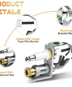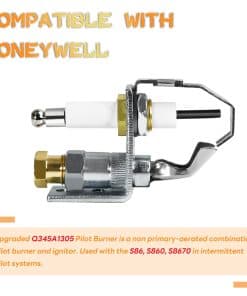 Piloto de Repuesto Q345A1305 Mejorado, Tipo Objetivo, con Soporte de Montaje Tipo B, compatible con los Sistemas de Piloto Intermitente Honeywell S86, S860, S8610, S8670. Ideal para uso con gas natural y fácil instalación. El piloto cuenta con una conexión de compresión de 1/4″, una combinación de piloto no primario aéreo con ignitor y una longitud de conexión de compresión de 0.78 pulgadas. Este piloto Q345A1305 es compatible con los sistemas S8600F, S8600H, S8600M, S8610F, S8610H, S8610M, S8610U, S8660D, S8660E, S8670D, S8670E de Honeywell. Fabricado con materiales de alta calidad como acero inoxidable, hierro galvanizado y latón, que aseguran resistencia a la corrosión y durabilidad. ¡Resuelve tus problemas de ignición con este piloto de repuesto de calidad superior!