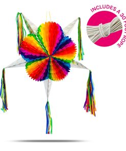 Piñata Estrella Arcoíris Jumbo Mexicana con Conos Plateados