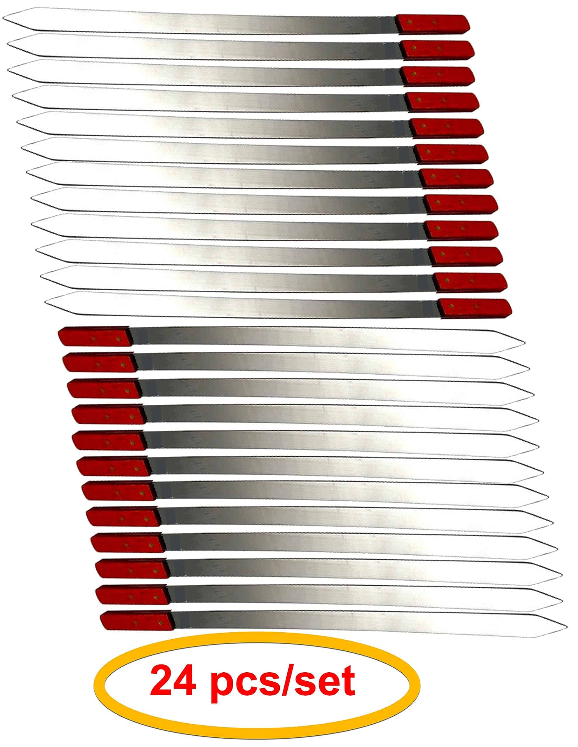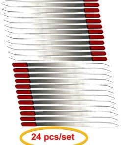 1. Material y Calidad de los Pinchos – Los pinchos están hechos de acero inoxidable de buena calidad con un mango ergonómico para un uso seguro. Preparados con material de calidad alimentaria y a prueba de óxido, son lo suficientemente largos y anchos para evitar quemaduras. 2. Hoja Plana y Punta Angular – La hoja del pincho es plana y ancha, con una punta angular para ensartar fácilmente carnes y verduras favoritas. Se pueden girar fácilmente en ambas direcciones. Las esquinas afiladas permiten apilar fácilmente sin dañar la carne y las verduras. 3. Peso, Longitud y Ancho de los Pinchos – Peso: 0.5 lbs por pincho | Longitud: 23.62″ | Ancho: 1″. 4. Fácil de limpiar y duradero – Estos pinchos durarán más de lo que piensas, la calidad es buena para durar años y puedes usarlos fácilmente en todas tus fiestas y reuniones. Para fines de limpieza, lávalos a mano con un jabón y una esponja y estarán listos para usar la próxima vez. 5. Estilo Brasileño de Pinchos – El juego de grandes pinchos de barbacoa de acero inoxidable estilo brasileño es tu herramienta definitiva para una exitosa barbacoa en el patio trasero para entretener a tus amigos y familiares durante la temporada de vacaciones.