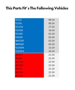 Compatible con Yamaha YZ125 YZ250 (1999-2025) / YZ125X (2017-2025) / YZ250X (2016-2025) / YZ250F (2001-2025) / YZ450F WR250F WR450F (2003-2025) / YZ250FX (2015-2025) / YZ450FX (2016-2025). CAD diseñado y mecanizado CNC utilizando tecnología de vanguardia. Optimizado para máxima resistencia y peso mínimo. Aleación de aluminio 7075-T6 de grado aeronáutico, el mejor material disponible. Para más detalles, consulte la descripción a continuación.