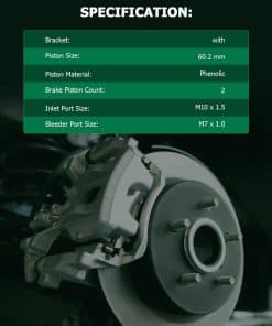 Pinza de freno delantera izquierda SCITOO 18B5303 con soporte para una variedad de vehículos Chevrolet y GMC. Incluye 1 pieza de ensamblaje de pinza de freno de disco con características como 2 pistones de 2.37 pulgadas de diámetro, con entrada y purga de tamaño M10 x 1.5 y M7 x 1.0 respectivamente. Las pinzas de freno SCITOO están recubiertas y pasan múltiples pruebas para garantizar el mejor rendimiento y durabilidad en cualquier condición. Instalación directa con hardware de montaje para una instalación rápida y sencilla sin modificaciones adicionales.