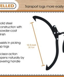 1. Hacer más fácil el transporte de troncos: La abrazadera de troncos Felled Manual Fire Log Grabber Campfire Tong le permite recoger o agarrar troncos y tocones sin esfuerzo; Las pinzas para troncos le ayudarán a recoger troncos para empacar en la camioneta o ayudarle a apilar y organizar su almacenamiento de leña. 2. Agarrar troncos grandes: Las pinzas de troncos de 12 pulgadas (30.5 cm) abren 10.5 pulgadas (26.7 cm) de punta de gancho a punta de gancho; Las pinzas redondeadas para troncos tienen ganchos en los extremos para agarrar y soltar rápidamente troncos de hasta 8 pulgadas (20.3 cm) de diámetro. 3. Construido para durar: La construcción de acero sólido asegura la máxima resistencia y durabilidad mientras que el acabado recubierto de polvo protege de la oxidación; Los remaches de metal ajustados crean un diseño de acción de tijera para un agarre seguro y una maniobrabilidad sencilla. 4. Operación con una sola mano: La acción de tijera de una sola mano se abre por sí sola; Envuelva las pinzas para troncos de la hoguera alrededor del tronco y empuje el mango hacia abajo para aplicar presión que clava los ganchos en la madera; Coloque el tronco donde lo desee y tire del mango hacia arriba para soltar los ganchos. 5. Agarre seguro: El mango de pinza de madera de 4.7 pulgadas (12 cm) tiene un diámetro de 1.5 pulgadas (3.8 cm) y se ajusta perfectamente en su mano; El agarre de goma angulado garantiza un agarre cómodo y seguro y se mantiene fresco y seco cuando estás levantando troncos