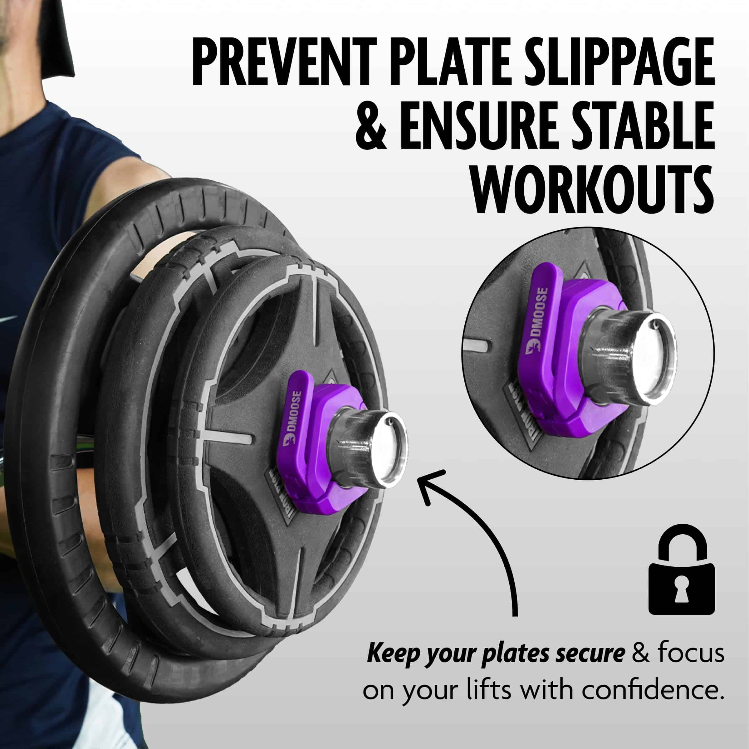 3. – : La Abrazadera de Liberación Rápida de DMoose cuenta con un diseño fácil de usar que se adapta a todas las barras de 2″. Ajuste y asegure rápidamente sus pesos con facilidad, ahorrando tiempo y manteniendo fuerte el impulso de su entrenamiento. Ideal tanto para gimnasios caseros como comerciales. Disfrute de transiciones perfectas entre series con estas abrazaderas de peso fáciles de usar, diseñadas para ajustes rápidos y eficientes.