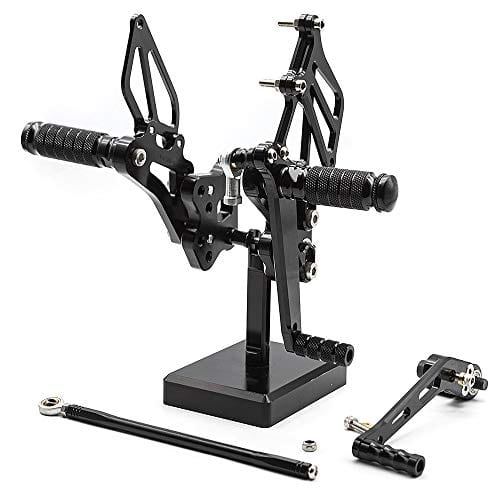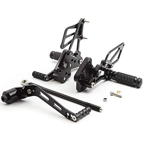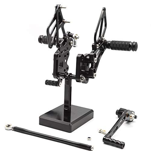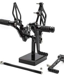 Montaje: GSXR600/GSXR750 2006-2010. Característica: 100% nuevo, Material: Aluminio T6061-T6 (Material de alta calidad, ligero y ligero), Acabado: CNC y Anodizado (duradero y no es fácil de desvanecer), Color: Como en las imágenes, si necesitas otro color, por favor déjame una nota después del pago, ¡gracias! Paquete incluido: 1 par (Pisadera de Freno + Pisadera de Cambio + Cambio Estándar), Peso: 3.3LB, Otros: Ajuste perfecto y no se necesita ninguna modificación, no se incluyen instrucciones de instalación. Nota: 1. El reposapiés en las imágenes es diferente al reposapiés original, porque hay demasiados modelos de motocicletas. 2. Por favor déjanos una nota sobre el modelo y año de tu moto cuando hagas el pago, nosotros lo comprobaremos por ti antes de enviar el artículo. 3. El proceso de instalación del producto es más complejo, si tienes cualquier problema después de recibir la mercancía, por favor consúltanos, haremos todo lo posible para ayudarte a solucionar el problema. Sobre el servicio posventa: Estamos comprometidos con una política de devolución incondicional para cada cliente por tres meses. Siempre intentamos proporcionar productos de alta calidad y el mejor servicio a todos. Si tienes alguna pregunta, no dudes en ponerte en contacto con nosotros. Otro Producto: –Pedales de Pisadera: B0719FR5W2; –Varilla de Cambio de Marchas: B078PFLK9C; –Manillar de Motocicleta de 7/8» 22mm Tapas de Extremo: B078GMF2CQ;