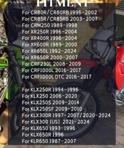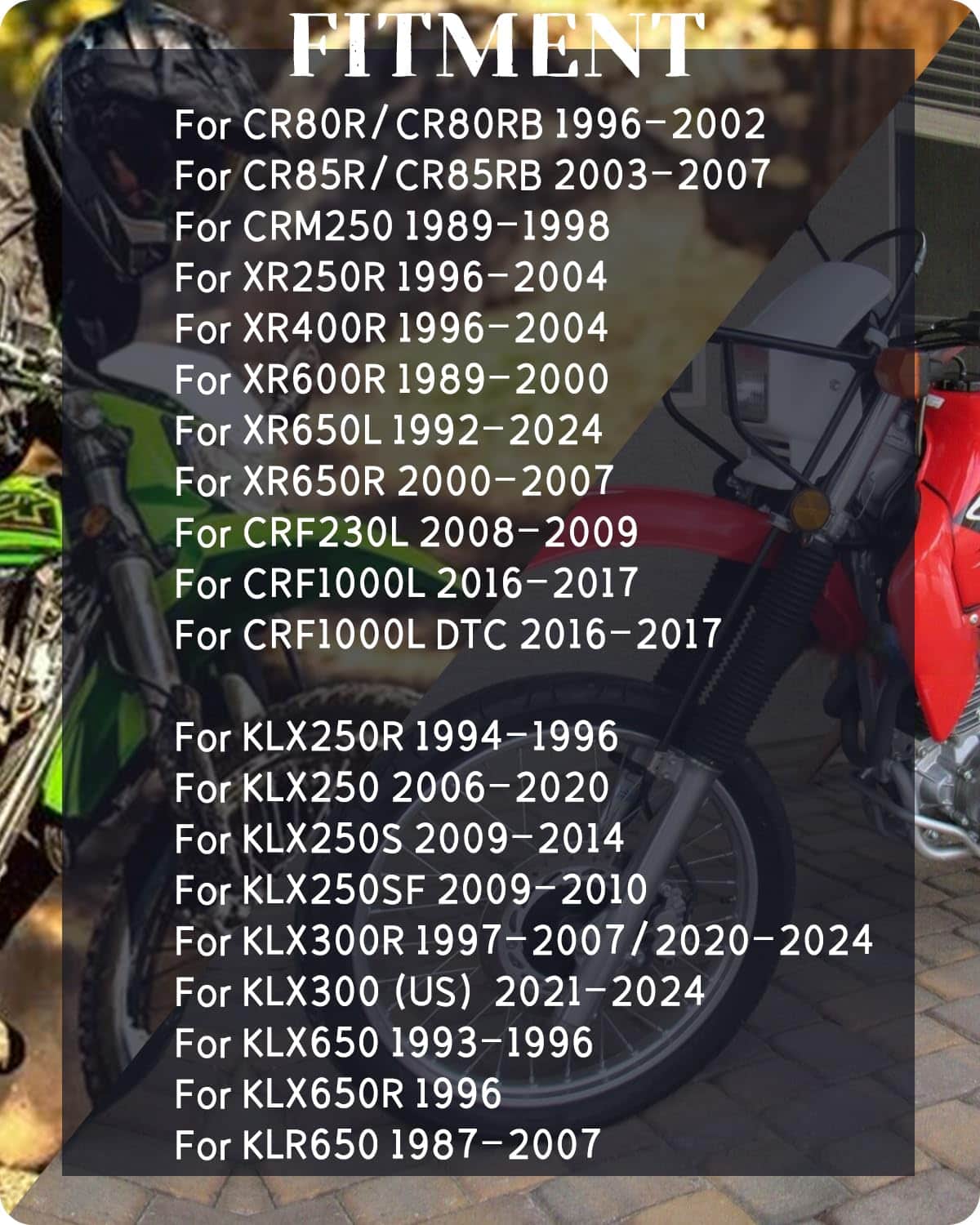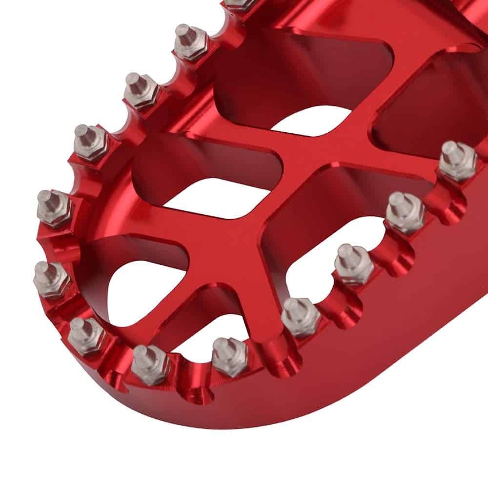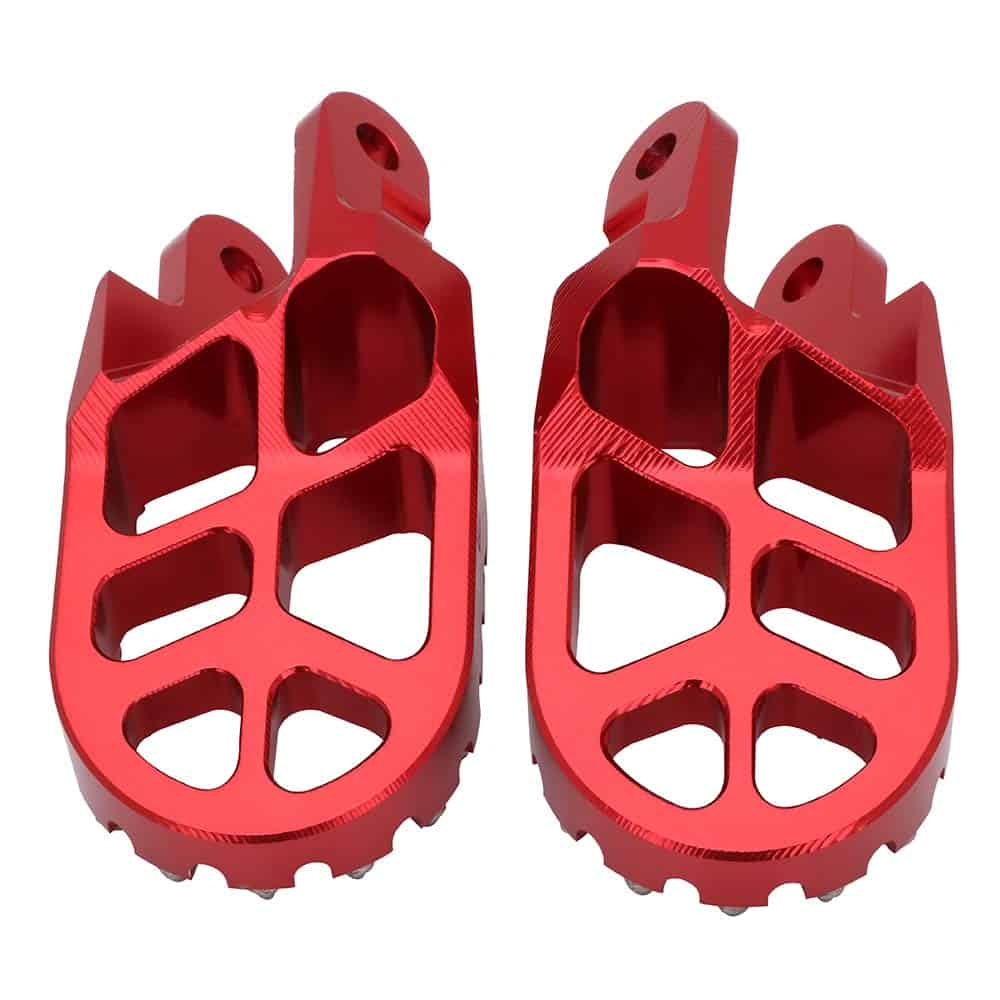 ¡100% nuevo, nunca montado, de alta calidad! Material de aluminio forjado de alta resistencia con anodizado duro en rojo. Hermoso y ligero. Fácil de instalar. Los dientes de acero inoxidable se pueden reemplazar, brindan un excelente control del pie. Diseño nuevo de 2018. Precio por un par de pisantes como en las imágenes, se vende con resorte, dientes y pasadores de fijación. ¡Eleva tu experiencia de conducción con estos pisantes para motocicleta! Color: Como en las imágenes. Material: Aluminio. Compatibilidad: Para CR80R/CR80RB 1996-2002, CR85R/CR85RB 2003-2007, CRM250 1989-1998, XR250R 1996-2004, XR400R 1996-2004, XR600R 1989-2000, XR650L 1992-2024, XR650R 2000-2007, CRF230L 2008-2009, CRF1000L 2016-2017, CRF1000L DTC 2016-2017, KLX250R 1994-1996, KLX250 2006-2020, KLX250S 2009-2014, KLX250SF 2009-2010, KLX300R 1997-2007/2020-2024, KLX300(US) 2021-2024, KLX650 1993-1996, KLX650R 1996, KLR650 1987-2007. Paquete incluye: 1 par de pisantes con resorte y dientes como en las imágenes. Las instrucciones de instalación NO están incluidas.
