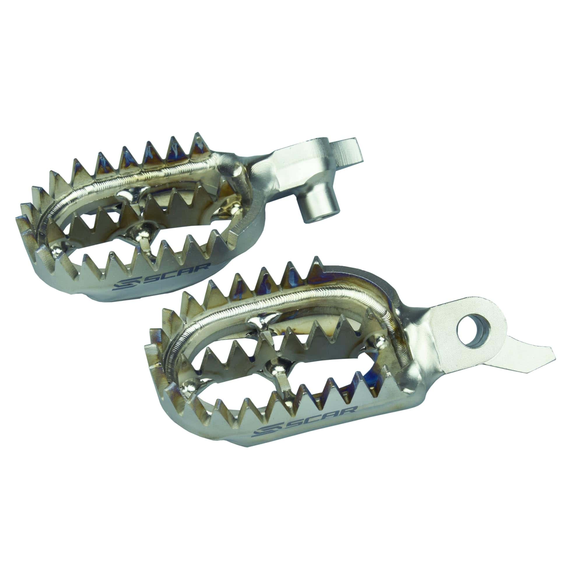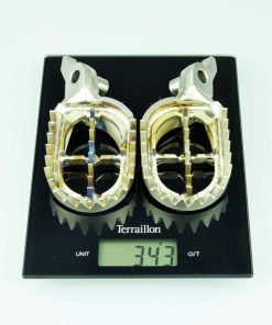 Compatible con YAMAHA YZ450F 23-24 YZ250F 2024. Fabricado en titanio de grado aeroespacial Ti-6AL-4V y soldadura resistente. El cuerpo de los pisapies mide 60 mm de ancho, 10mm más ancho que el OEM. Ultraligero con aproximadamente 300g por par. Calidad premium y alto rendimiento.