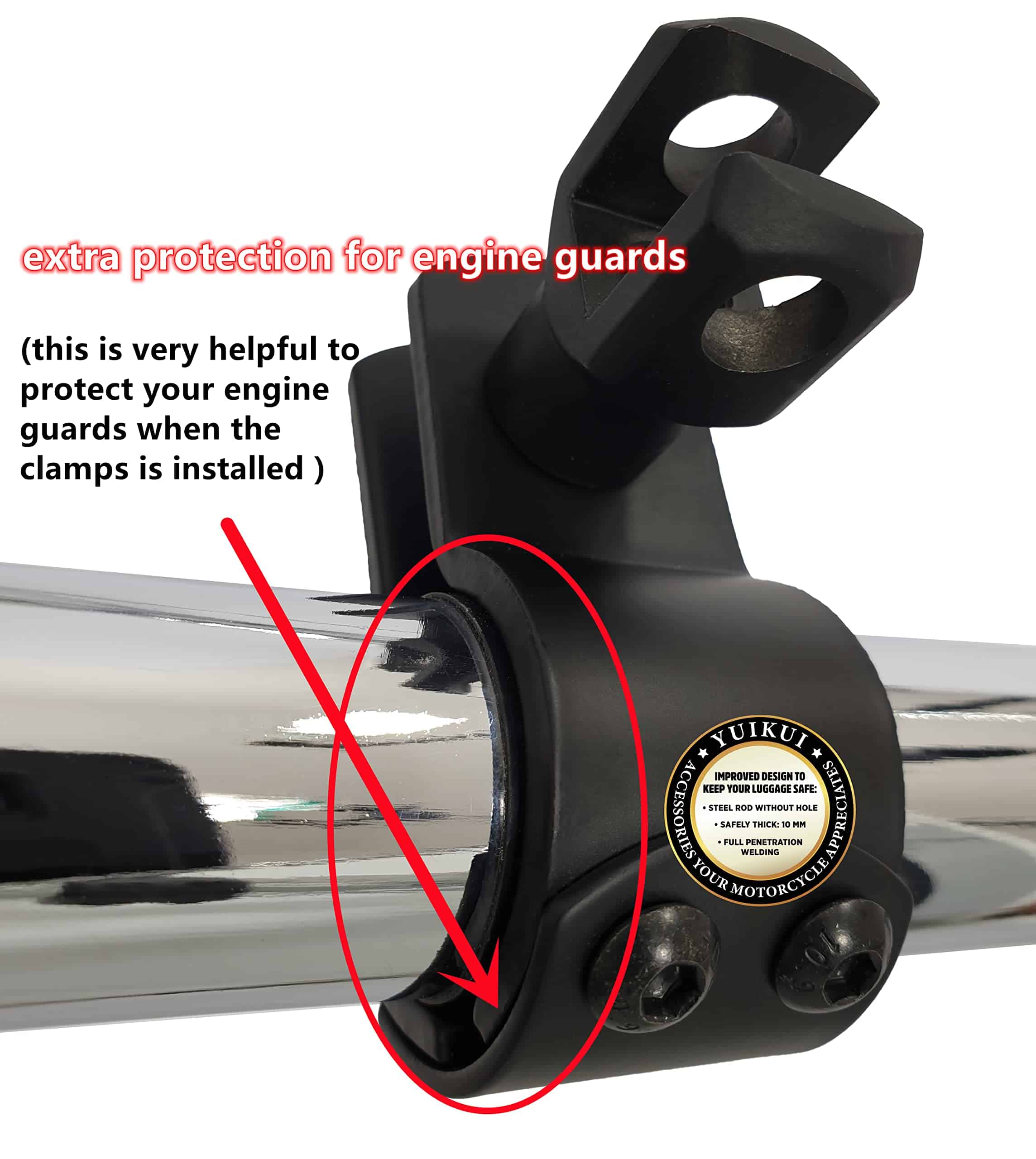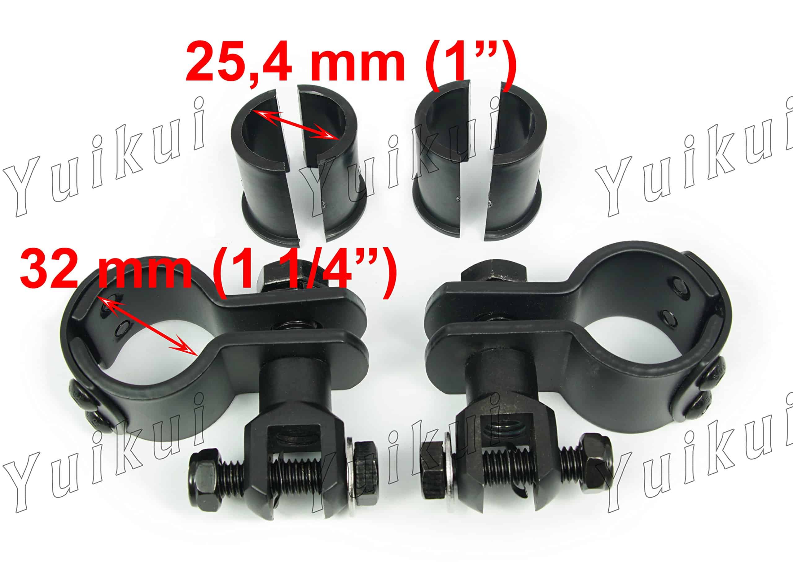 Para barras de protección del motor: Para todas las motocicletas con barra de protección del motor de 1-1/4″ (32mm) o 1″ (25.4mm) (Harley Davidson/Honda/Yamaha/Kawasaki/BSA/Norton/Triumph Bobber, Chopper, Cafe racer, ATV, UTV, Scooter, etc).