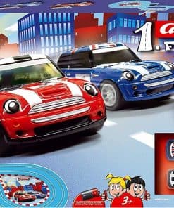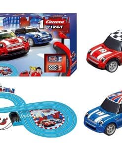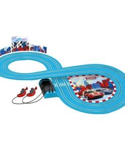 ¡Niños de tan solo 3 años de edad ahora pueden agarrar los controles y acelerar alrededor de esta pista de carreras amigable para niños! ¿Te pondrás detrás del auto Ferrari rojo o amarillo? Cada set de carreras de autos slot Carrera First presenta un ambiente temático divertido en una pista construida alrededor de sus personajes favoritos de autos, programas de televisión, películas o videojuegos. Tu hijo encontrará fácil permanecer en la pista con los controladores de velocidad regulados electrónicamente que les permiten correr sin parar en una acción cara a cara contra sus amigos o hermanos. Los primeros sets, que están construidos a escala de 1:50, son una gran introducción al mundo rápido y emocionante de las carreras de autos slot. La pista de 7.87 pies funciona con 4 pilas tipo C (no incluidas) y es fácil de armar o desarmar para moverla de una habitación a otra o llevarla contigo. ¡Los niños disfrutarán de horas de diversión interminable corriendo sus autos alrededor de la pista y compitiendo por el primer lugar! ¡Bienvenido a la familia Carrera de las carreras de autos slot!