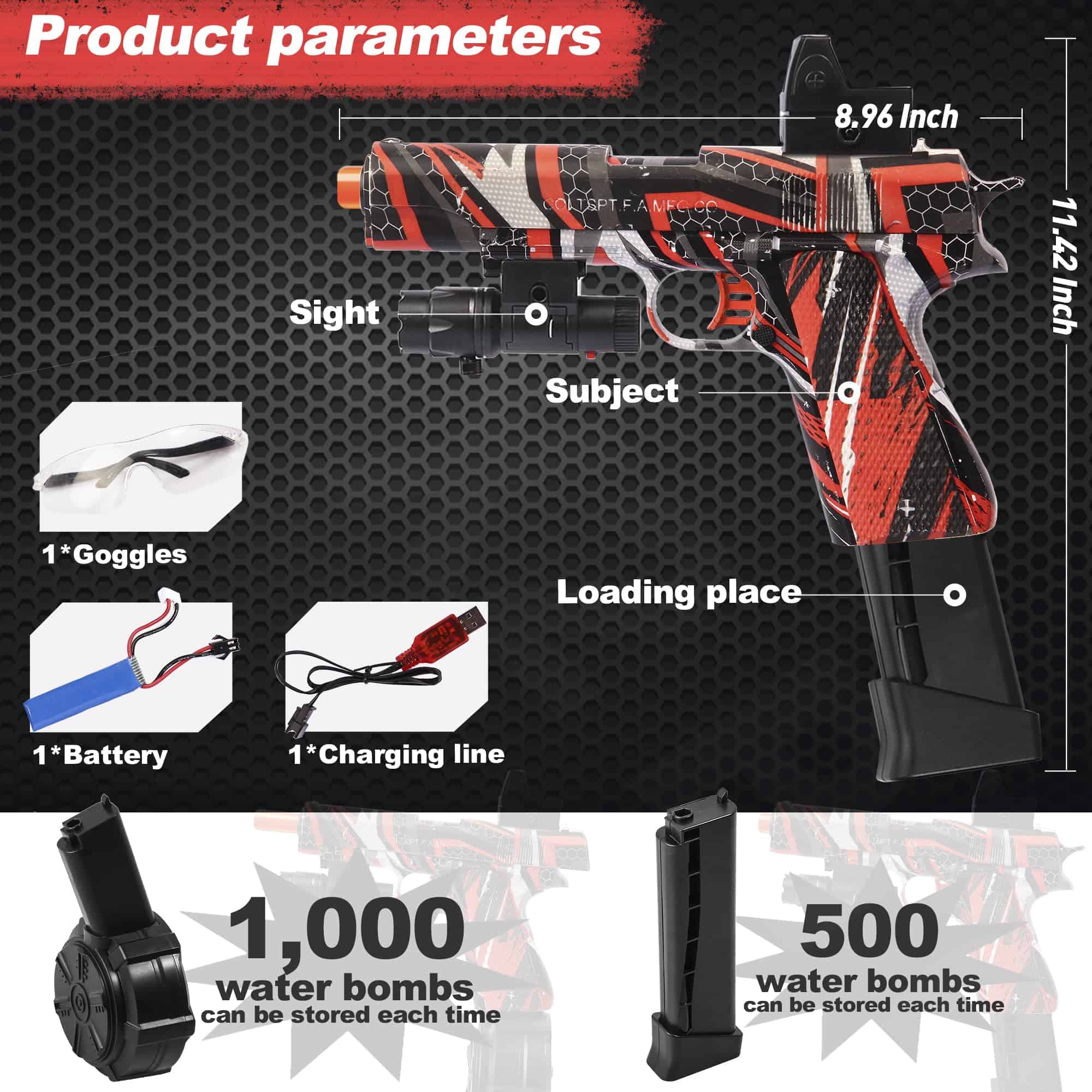 Mejor Elección de Regalo Si estás rompiéndote la cabeza para elegir un regalo, esta pistola de gel es la mejor opción de regalo, el juego de pistolas de balas de gel es una forma divertida y segura de ejercitar tus habilidades tácticas y drenar tu energía, con un estilo clásico y el tamaño adecuado. Es un gran regalo de cumpleaños, vacaciones o Navidad para todos.