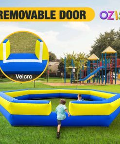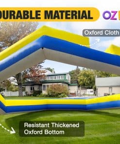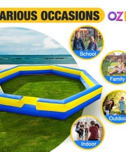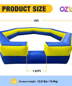 El Pit de Gaga Inflable de 15FT en azul y amarillo de OZIS con Soplador Incorporado está construido con material de tela Oxford duradero, convirtiéndolo en un Pit de Gaga portátil adecuado para actividades en interiores y exteriores, ideal para uso escolar y familiar. Es fácil de montar, permitiendo que tus hijos jueguen en un ambiente seguro y divertido.