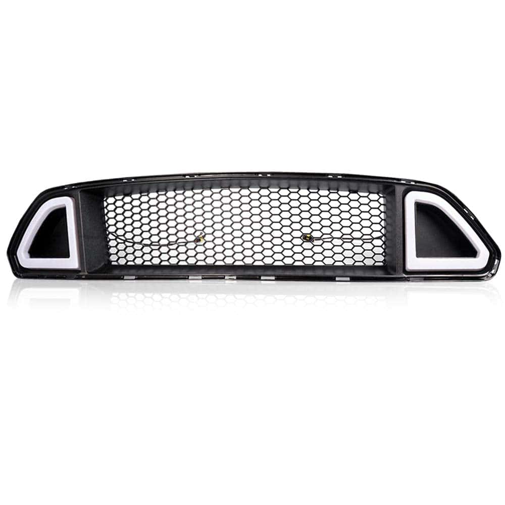 Título: Rejilla delantera con luz inferior LED Aplicación: Compatible con Ford Mustang 2015-2017 Todos los modelos Descripción: La parrilla superior cuenta con una iluminación de señal de giro multifunción. Reutiliza los puntos de montaje de fábrica (No se requieren modificaciones). La parrilla está hecha de material plástico de grado OEM para igualar los estándares OEM. Las luces son resistentes a los rayos UV y duraderas ante elementos adversos. Las luces cumplen con todos los requisitos de FMVSS. El paquete incluye: 1 juego de parrilla delantera con luz inferior LED, como se muestra en la imagen Nota: Todos los artículos de nuestra tienda llegarán a usted con el número de seguimiento.