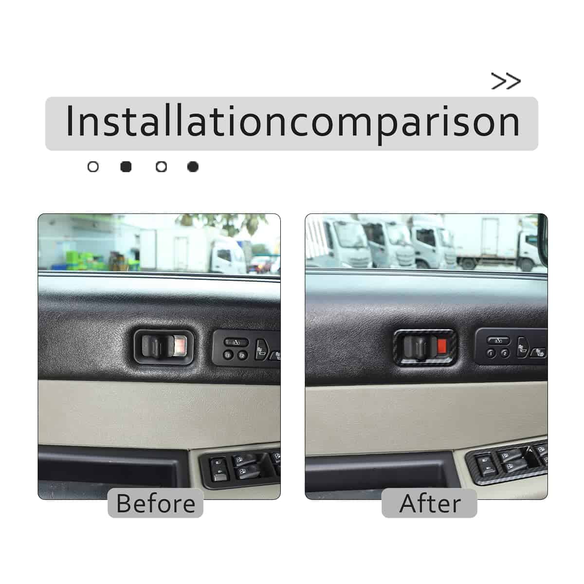 Esta cubierta de botón de bloqueo de puerta del coche es un accesorio de decoración perfecto para tu Hummer H2 2003-2007. Está diseñada para proteger el bloqueo de la puerta de arañazos causados por las uñas de los dedos o las llaves. Además de brindar protección, esta cubierta también mejora el aspecto del interior de tu H2, agregando un toque de estilo personalizado. La cubierta está hecha de ABS de alta calidad, lo que la hace ligera, resistente al color y duradera. Su instalación es fácil y rápida, simplemente limpia la superficie, despega la cinta adhesiva (puedes calentarla ligeramente para una mejor adhesión) y presiona firmemente. La cinta especial de doble cara 3M asegurará que la cubierta se quede en su lugar sin causar daños al coche. Además, si tienes alguna pregunta o problema durante la instalación, nuestro equipo de atención al cliente estará encantado de ayudarte en un plazo de 24 horas. No te preocupes por tu compra, estamos aquí para asegurarnos de que tengas la mejor experiencia posible con tu Cubierta de Botón de Bloqueo de Puerta del Coche Hummer H2. ¡Haz tu pedido ahora y disfruta de una protección duradera y un aspecto mejorado para tu H2!