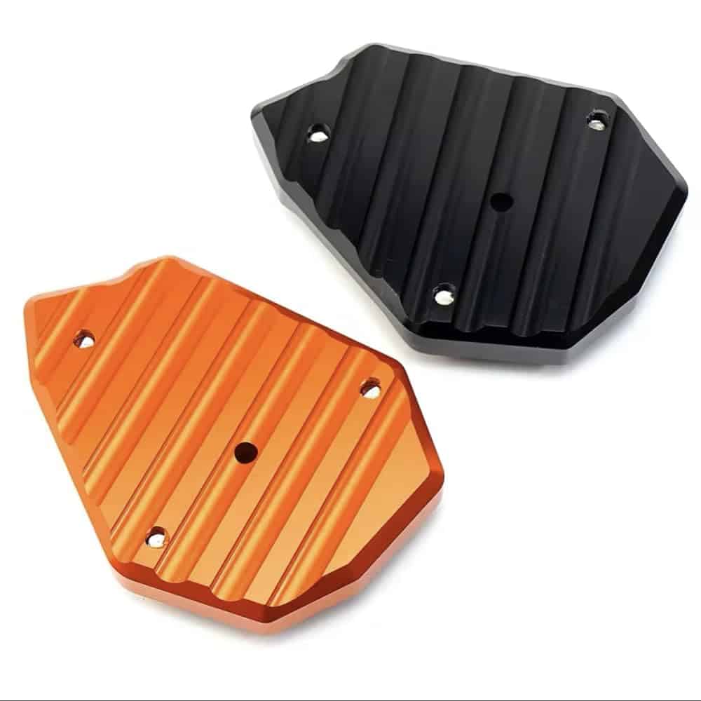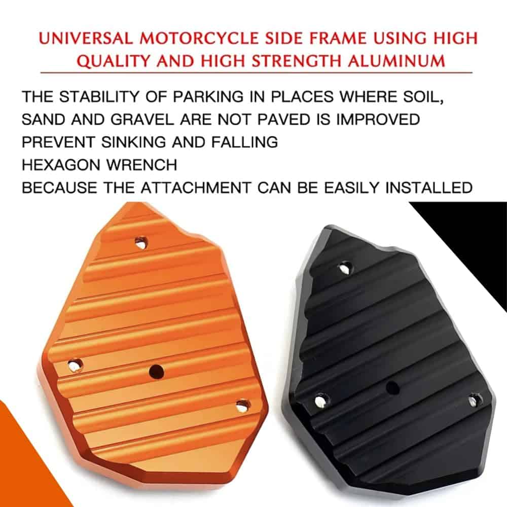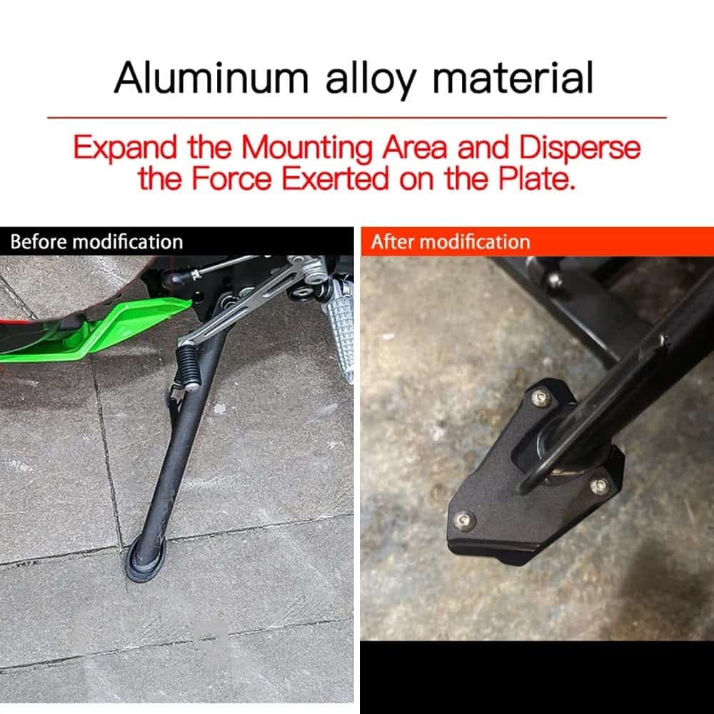 Material de calidad con un proceso especial: La placa de ampliación de pata lateral está fabricada con mecanizado CNC a partir de una aleación de aluminio de alta densidad, resistente, de alta resistencia y duradero. Acabados anodizados en la superficie para evitar la oxidación, el óxido y la corrosión.