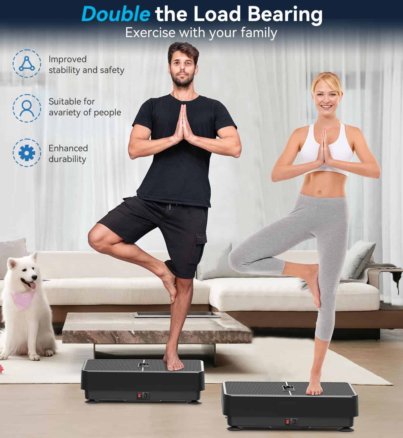 Con capacidad para todos los niveles de fitness, soportando hasta 400 lbs (recomendación 368 lbs), la placa de vibración cuenta con 5 modos preestablecidos para principiantes y opciones de velocidad personalizables para usuarios avanzados, asegurando una experiencia de entrenamiento personalizada para todos. La plataforma espaciosa de 21×12.3 pulgadas proporciona un amplio espacio para un movimiento sin restricciones, lo que hace que esta máquina de ejercicios de placa vibrante sea ideal para una amplia gama de ejercicios en casa. Perfecta para el drenaje linfático, la relajación muscular y el alivio del dolor de espalda, esta placa de vibración mejora la circulación y fortalece las piernas, siendo adecuada para todas las edades y objetivos de fitness. Con tecnología de bajo ruido, esta placa de vibración te permite hacer ejercicio sin molestar a tu familia o compañeros de cuarto, siendo ideal para sesiones tempranas por la mañana o tardes nocturnas. Las almohadillas antideslizantes y un botón de parada de emergencia añaden seguridad y estabilidad a tu entrenamiento.