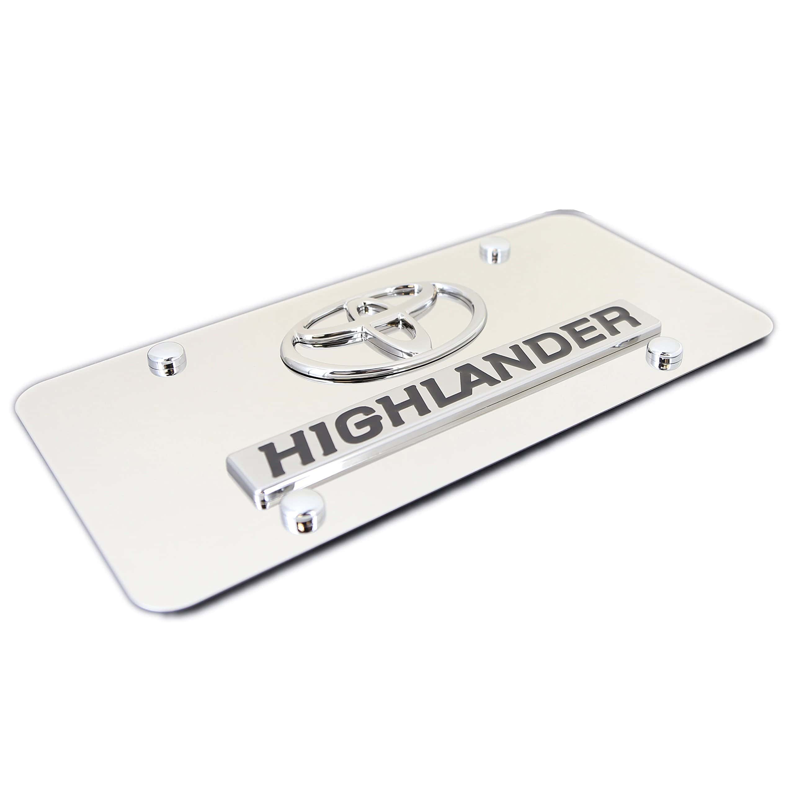 Placa de matrícula oficial con licencia de Au-TOMOTIVE GOLD INC. para Toyota Highlander. Esta placa cuenta con un logotipo en 3D montado en una placa de acero inoxidable pulido. Viene con hardware y tapas de disuasión de robo a juego para ocultar los tornillos antiestéticos. Las dimensiones del producto son 6 pulgadas de alto por 12 pulgadas de ancho. Respaldado por garantía de por vida del fabricante contra defectos de material y mano de obra.