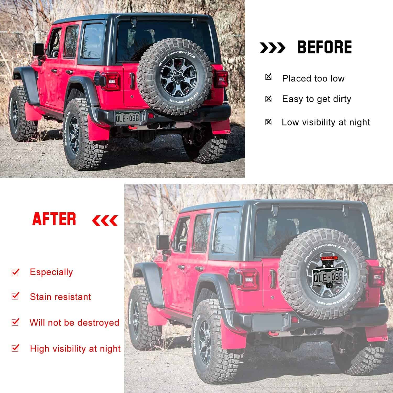 Para Jeep Wrangler JL 2018-2023. Este producto puede instalar la placa de matrícula en la rueda de repuesto lejos de la ubicación de fábrica fácilmente dañada, para que su placa de matrícula esté protegida y sea más visible.