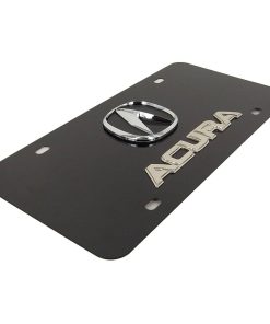 Placa de Matrícula Negra con Logo Cromado de Acura + Nombre