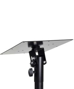 Se adapta a cualquier poste de altavoz estándar de 1 3/8 pulgadas (35 mm) de diámetro y se puede posicionar horizontalmente para proyectores, verticalmente para televisores, o en cualquier ángulo intermedio. La placa de montaje de 8.5 x 8.5 pulgadas cuenta con agujeros de montaje VESA 75, 100 y 200, e incluye una variedad de hardware de montaje para elegir. Es compatible con la mayoría de los televisores entre 32-55 pulgadas y proyectores u otros dispositivos de hasta 27 libras.
