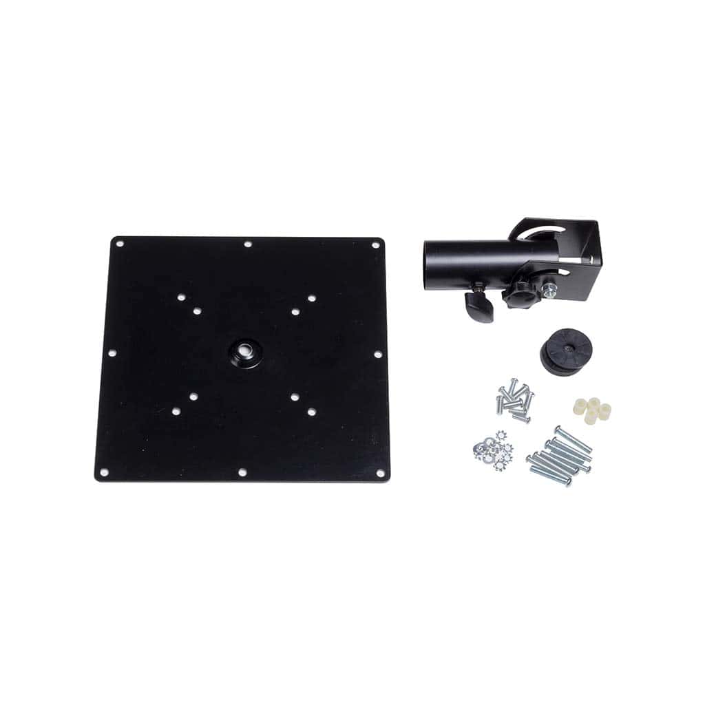 La Placa de Montaje para Altavoz Headliner está diseñada para montar un dispositivo como un televisor o monitor, proyector, o cabeza móvil de luz a un soporte de altavoz. Un accesorio útil para DJ móviles, planificadores de fiestas, y diseñadores de producción que debe estar disponible para bodas, bar-mitzvahs, eventos corporativos, ferias comerciales u otras instalaciones temporales.