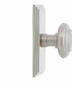 La placa de arco, con su suave curva superior que se encuentra con un borde en cascada, transmite una gentileza amplificada por la fortaleza. Combine esto con la palanca Bellagio, con su contorno curvado graciosamente para una combinación inigualable. Todos los productos de Grandeur se crean a partir de latón macizo (no plateado) forjado.