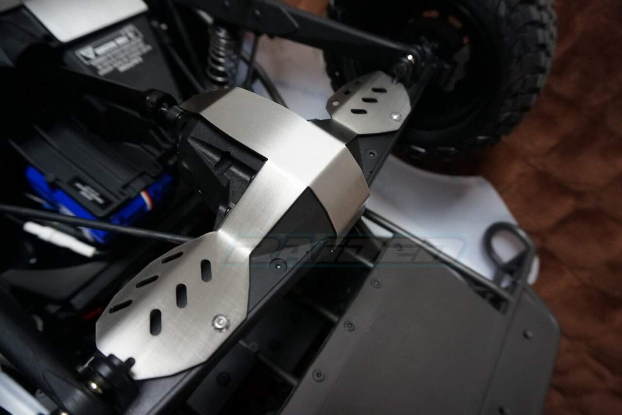 Placa de protección de eje y chasis de acero inoxidable diseñada específicamente para el Traxxas UDR Unlimited Desert Racer. Protege el eje y el chasis de tu vehículo de terrenos difíciles y abrasivos, garantizando una mayor durabilidad y resistencia. Fabricada con acero inoxidable de alta calidad para una protección confiable y duradera. ¡Mantén tu Traxxas UDR en óptimas condiciones con esta placa de protección de calidad superior!