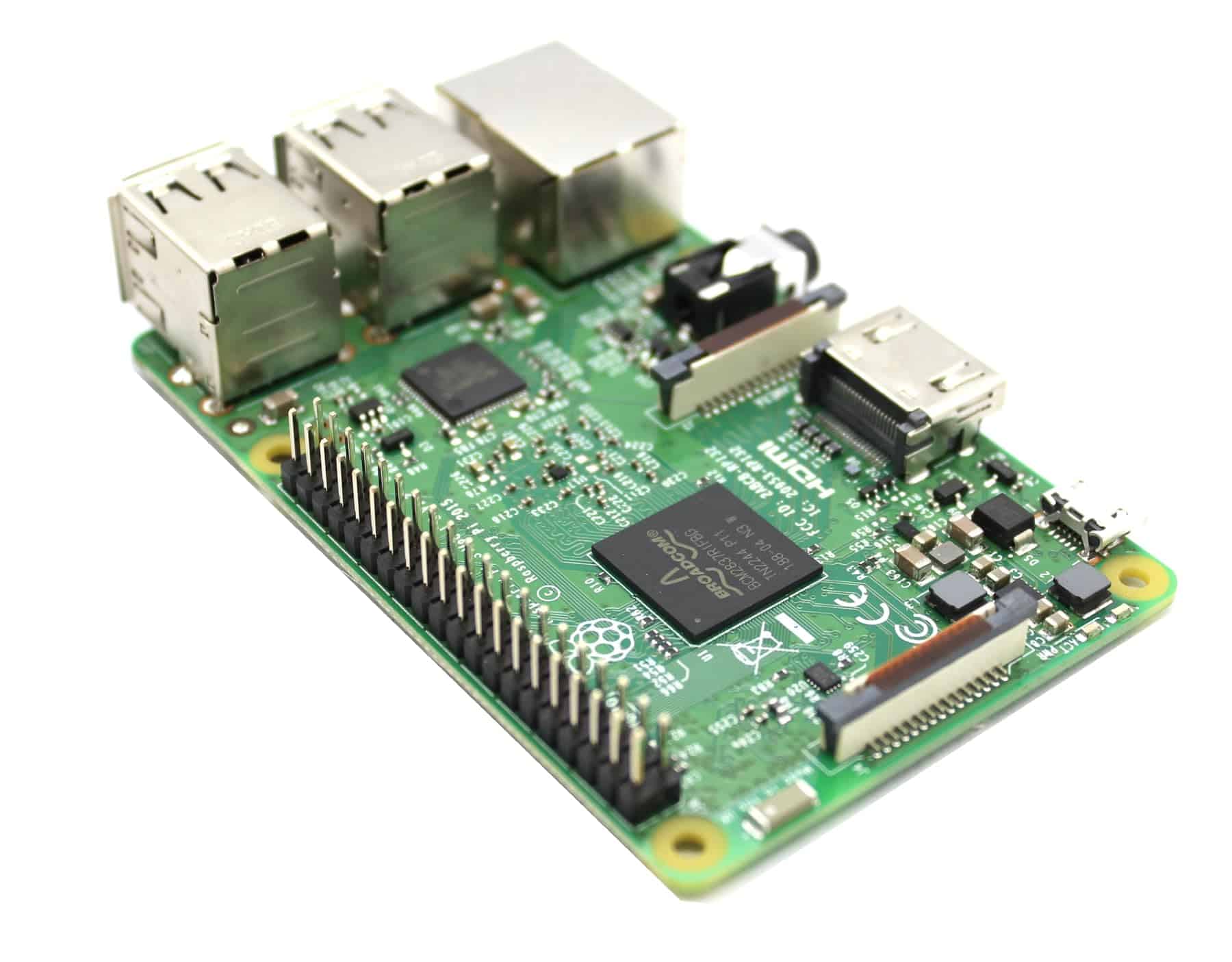Placa Raspberry Pi 3 Modelo B Procesador Quad Core 1.2GHz Broadcom BCM2837 CPU de 64 bits WIFI y Bluetooth WiFi y Bluetooth de baja energía (BLE) BCM43143 en la placa USB 4 puertos USB 2.0 Salida de video HDMI y compuesto Sonido Estéreo L/R Memoria 1GB de RAM Sistema operativo Utiliza ranura para tarjeta micro SD para cargar el SO Interfaces digitales 2 ranuras de cinta a bordo para cámara y pantalla GPIO 40 pines GPIO, compatible con las placas B y B+ Puerto de cámara CSI para conectar una cámara Raspberry Pi Puerto de visualización DSI para conectar una pantalla táctil Raspberry Pi Puerto micro SD para cargar su sistema operativo y almacenar datos Paquete incluido: 1 pieza de Placa Raspberry Pi 3 Modelo B Con Caja Original