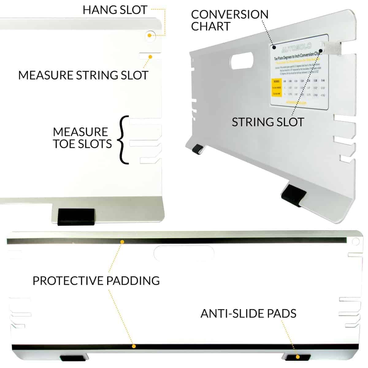 6. VERSÁTIL PARA ALINEACIÓN DE RUEDAS DELANTERAS Y TRASERAS: Las placas de alineación de toe están diseñadas tanto para la alineación delantera como trasera, asegurando que el sistema de ruedas completo de tu vehículo esté correctamente alineado.