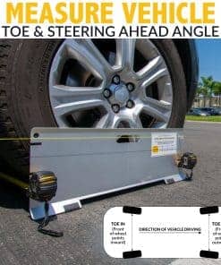 3. KIT DE ALINEACIÓN DE RUEDAS COMPLETO: Esta herramienta de alineación para vehículos automotrices incluye dos placas de alineación de toe de precisión, cintas métricas y un kit de cuerda, ofreciendo un paquete completo para ajustes de alineación de ruedas rápidos y fáciles en casa o en la tienda.