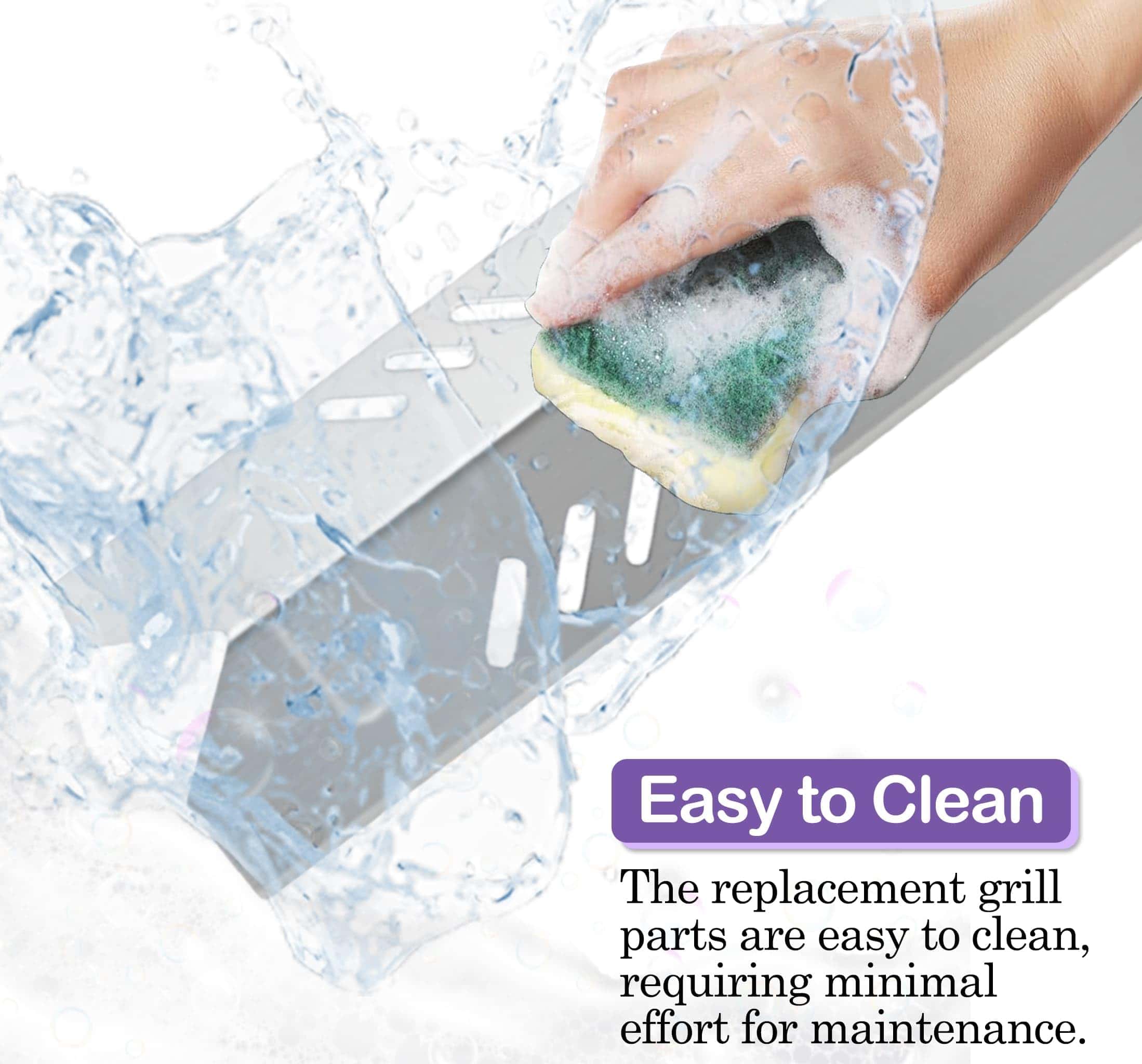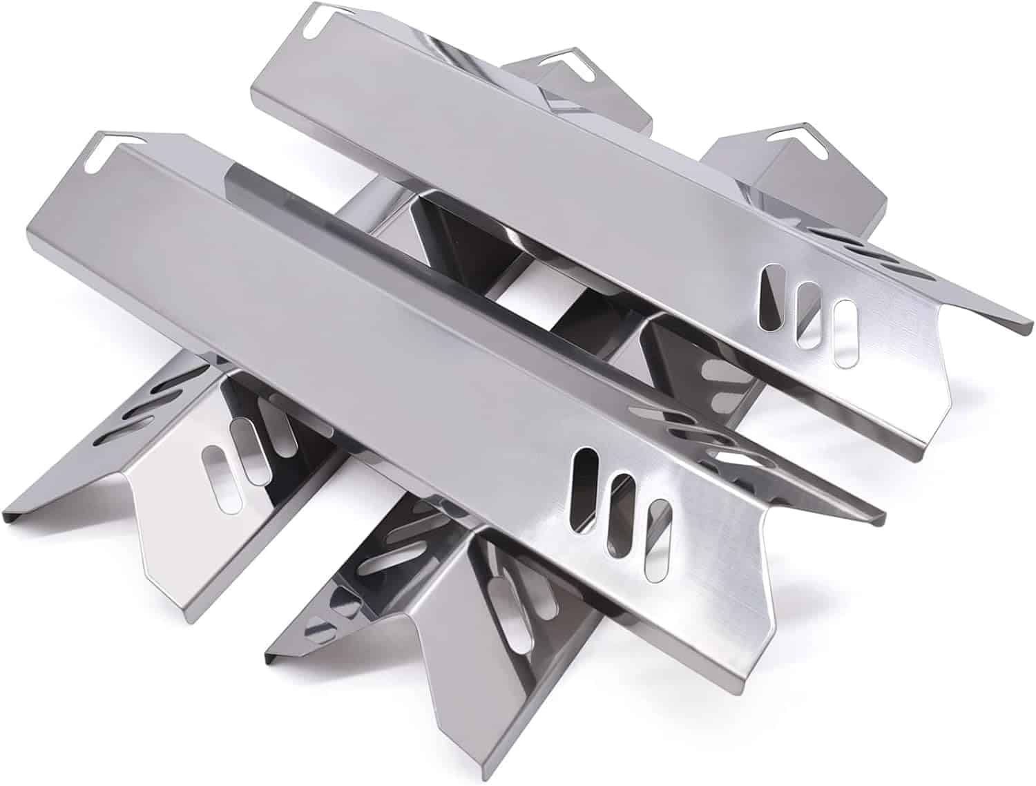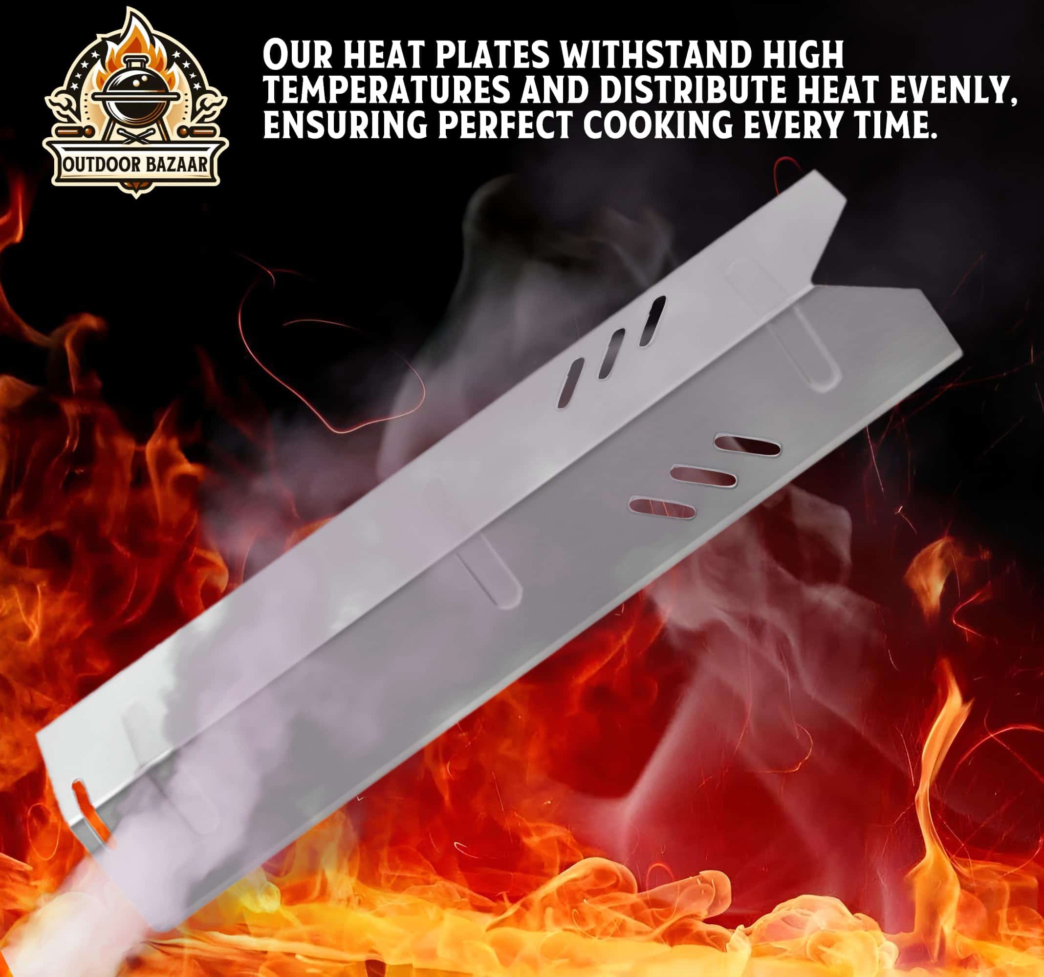 Compatibilidad con piezas de repuesto para parrilla BBQ para Backyard Grill BY12-084-029-98, BY13-101-001-12, BY13-101-001-13, BY14-101-001-02, BY14-101-001-04, BY14-101-001-099, BY15-101-001-02, GBC1255W, GBC1355W-C, GBC1440WRSB-C, GBC1449-C, GBC1449WBS-C, GBC1449W-C, GBC1449WRS-C, GBC1460W, GBC1461W, GBC1462W-C, GBC1555W-C, GBC1562W-C. Uniflame GBC1059WB, GBC1059WB-C, GBC1059WE-C, GBC1069WB-C, GBC1143W-C, GBC1343WP-U. Better Homes Gardens BH13-101-099-01, BH14-101-099-01, BH14-101-099-06, BH15-101-099-02, GBC1362W, GBC1562W Dyna-Glo DGB494SPB, DGF493BNP, DGF510SBP, DGF510SSP, DGF510SSP-D. Outdoor Gourmet FSOGBG1106, FSOGBG1107, GR2205501-OG-00, GR2215101-OG-00 Tera Gear BG1686B5. Dimensiones. Cada escudo térmico Dyna Glo mide 15 pulgadas (Largo) x 3,8 pulgadas (Ancho). Construcción de Acero Inoxidable. Las piezas de reemplazo de la parrilla dyna-glo están hechas de acero inoxidable de alta calidad, asegurando resistencia a la corrosión y distribución uniforme del calor. Incluido con la compra. El paquete incluye 4 x tiendas de calor de reemplazo para dynaglo. Nota. Antes de realizar un pedido, asegúrate de verificar el tamaño de tus piezas de parrilla dyna glo originales para garantizar un ajuste perfecto.