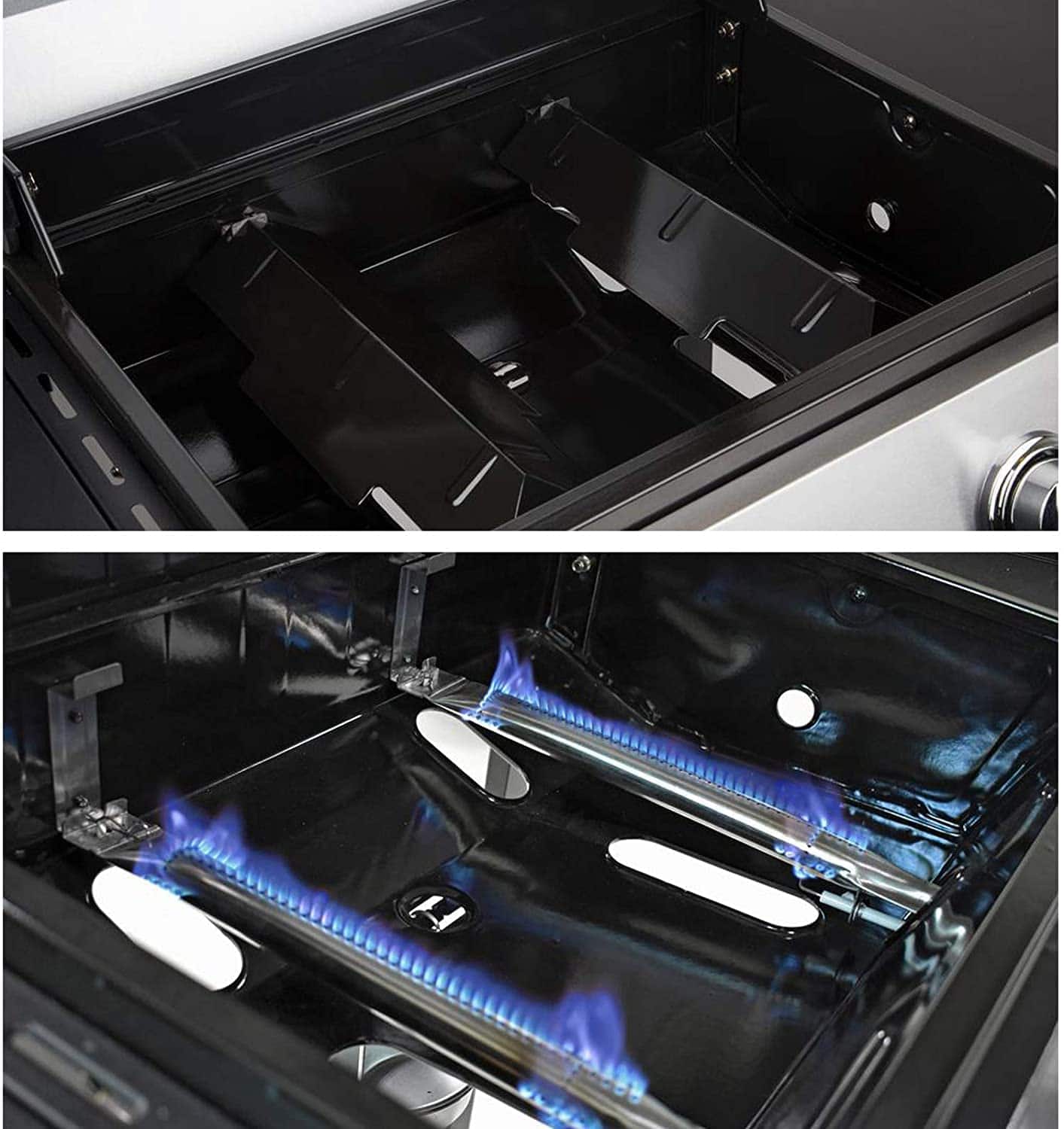 Package Included 2-Pack quemadores de acero inoxidable y 2-Pack placa de calor para parrilla Dyna-Glo. Perfect Match Dimensions : 14.5″ x 5″ por placa de calor. 14.5″ x 5″ por tubo de quemador. Adecuado para modelos de parrilla Dyna-Glo DGF350CSP, DGF350CSP-D, DGF350SNP DGF350SNP-D DG1-70-01-634-R 101-03011.Asegúrese de medir el tamaño de sus piezas originales y comparar con las nuestras antes de realizar su pedido. Easy to clean Grid surface is porcelain coated finish that prevents sticking and allows for easy clean up. Easy to use It prevents grease from dripping into the burner tube and protects the flame of the grill. After-Sales Service If there are any problems, please feel free to contact us by Customer Questions & Answers or E-mail.