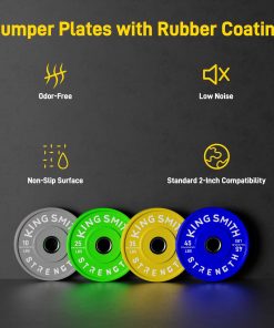 3. Compatibilidad Estándar de 2 Pulgadas: Diseñadas para adaptarse a todas las barras estándar de 2 pulgadas, nuestras placas de parachoques son versátiles y compatibles con prácticamente todas las barras de levantamiento de pesas en el mercado. Esta compatibilidad universal garantiza que puedas usarlas fácilmente con una amplia gama de ejercicios, desde levantamiento de pesas olímpico y CrossFit hasta entrenamiento de fuerza general.