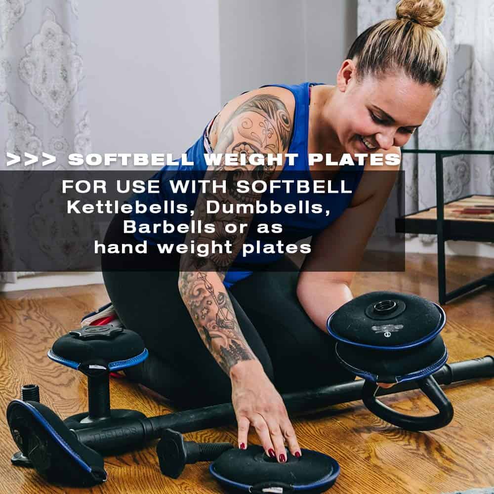 1. Peso de mano perfecto y pesas para muñecas, y adición a juego de pesas para gimnasio en casa para usar solo o con el sistema de juego de pesas ajustables patentado SoftBell de mancuernas ajustables, pesas rusas blandas, barras blandas o como pesas de plato para mano individual para hacer ejercicios con hasta 10 libras.