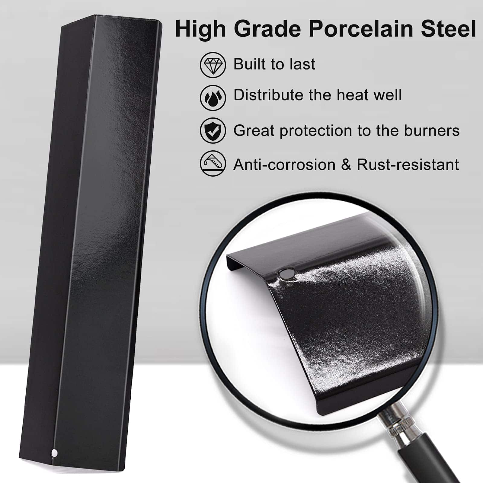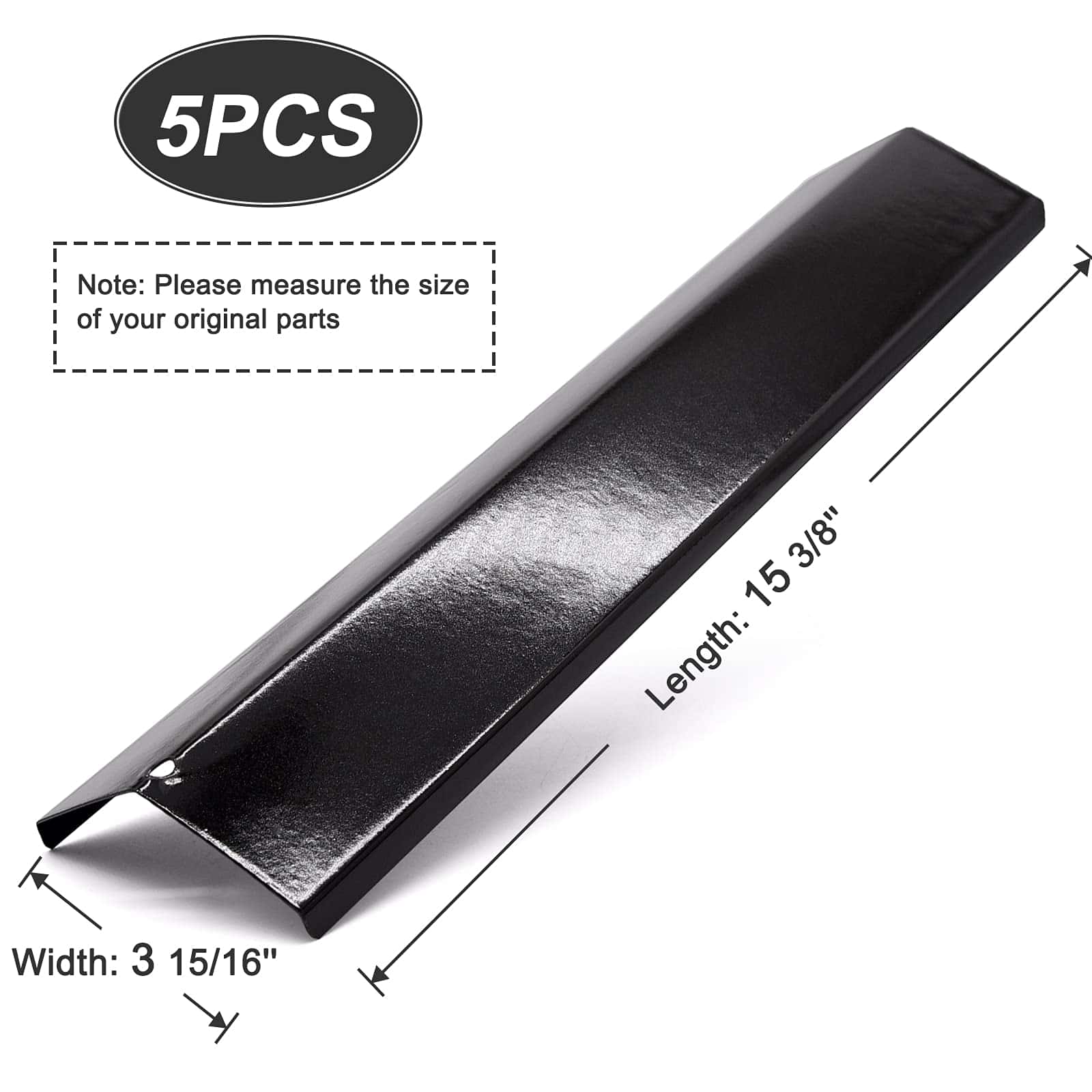 Especificaciones: Materiales: Acero Porcelana Dimensiones: 15 3/8 x 3 15/16 pulgadas Paquete: Placa de Protección de Calor de Acero Porcelana x 5 Repuestos de parrilla para: Brinkmann, Uniflame, Aussie, Charmglow, Grill King, Backyard Grill, Master Forge, Tera Gear, Master Cook. Nota: Los modelos listados son solo de referencia, por favor, mida doblemente el tamaño de sus placas de protección de calor originales y compare con las nuestras antes de hacer el pedido. ¡Gracias!