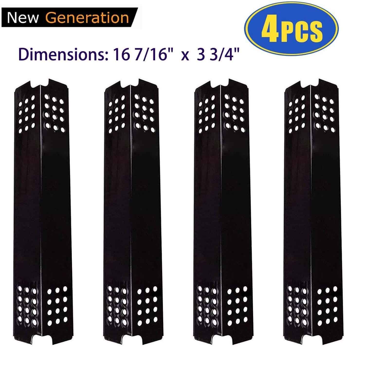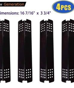 El protector térmico de repuesto es el producto perfecto para reemplazar su vieja placa térmica. Una nueva cubierta térmica proporciona una experiencia de parrilla uniforme para hacer su comida favorita mucho más placentera. Este escudo está diseñado para adaptarse sobre el quemador y protegerlo contra salpicaduras de grasa y trozos de comida caídos. Esta parte vital de la parrilla a gas ayudará a agregar sabor mientras se asan carnes y pescados. El mejor sabor se logra durante la parrilla al aire libre al convertir rápidamente las goteo de grasa en humo para agregar sabor. Especificaciones: Dimensiones: 16 7/16 pulgadas de largo, 3 3/4 pulgadas de ancho. Material: Acero porcelanizado. Incluido con la compra: 4 tiendas de repuesto para protección térmica. ¿Se ajusta a los modelos de Charbroil: 463241013, 463241313, 463241314, 463241413, 463241414, 466241013, 466241313, 466241413. Modelos de Master Chef: 85-3044-6, 85-3045-4, E480, E500, G45301, G45302, G45303, G45304, G45306LP, G45307N, G45308, G45309, G45311, G45312. Modelos de Coleman: 85-3120-4, 85-3121-2, G53201, G53203, G53204. Nota: Las marcas y modelos «Adaptables» mencionados son solo para referencia. ¡Le recomendamos encarecidamente que mida el tamaño de sus repuestos originales y haga una comparación con nuestra lista! ¡Mida dos veces. Compre una vez. «Ventajas y Beneficios: Ajuste perfecto, Funciona bien. Muy fácil de instalar. Ayuda a distribuir el calor. Mucho más barato que comprar localmente. Haga que su parrilla parezca nueva otra vez. Extienda la vida útil de su parrilla.