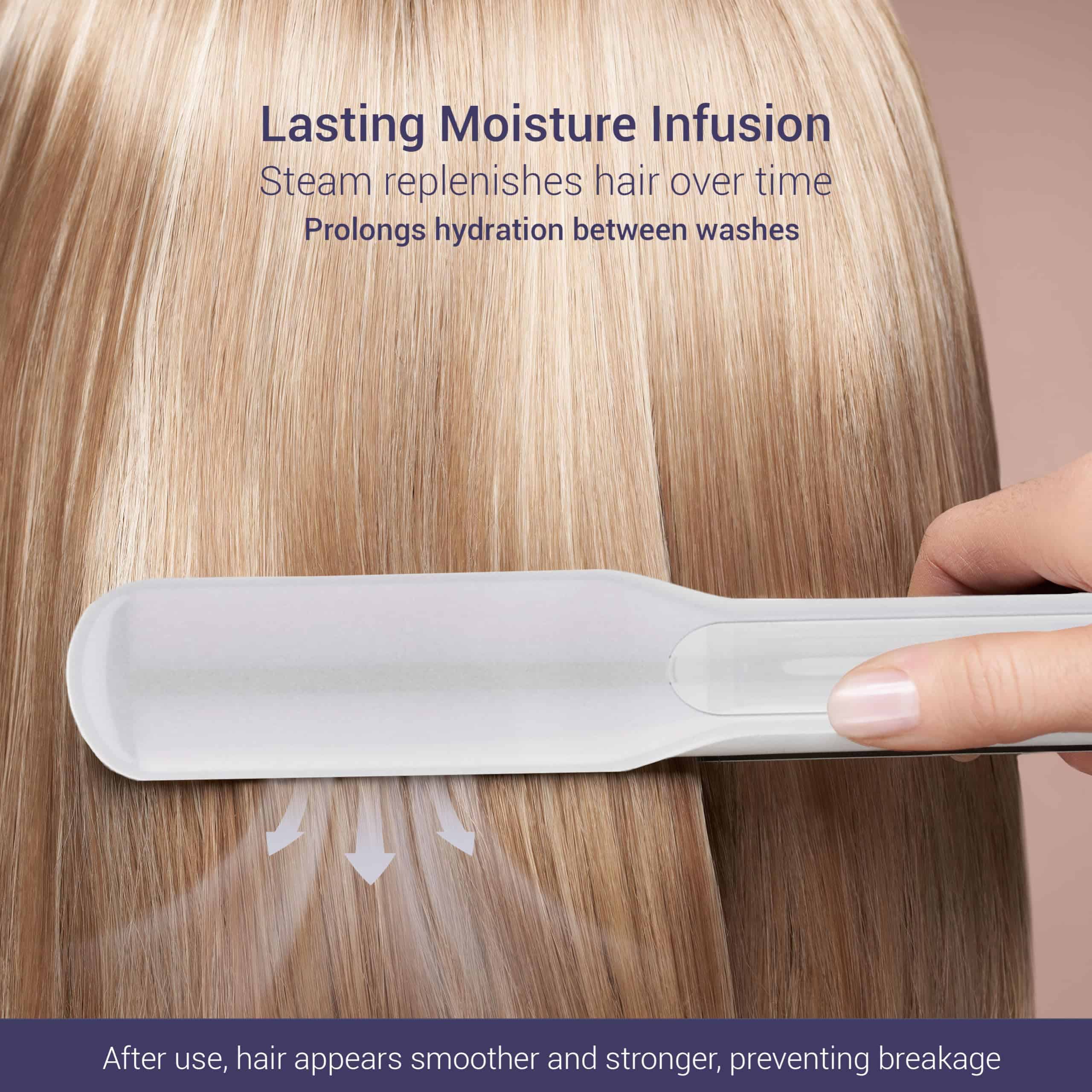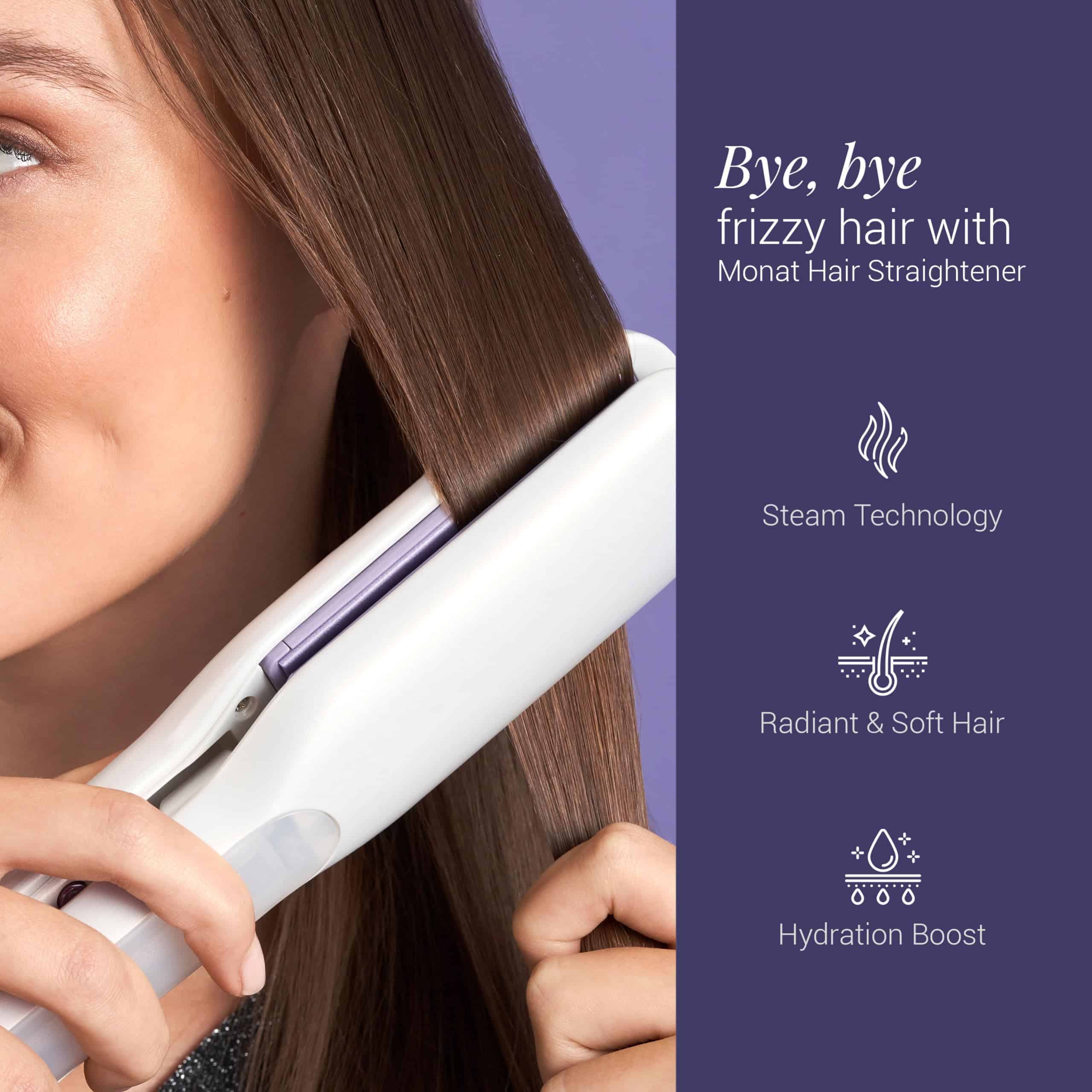 1. Para un cabello suave y sedoso: ¡Dile adiós a las planchas tradicionales y adopta la tecnología de vapor de nuestra plancha de pelo de vapor Monat! Esta plancha de vapor garantiza un peinado fácil y proporciona un impulso de hidratación, que deja tu cabello radiante y flexible!.