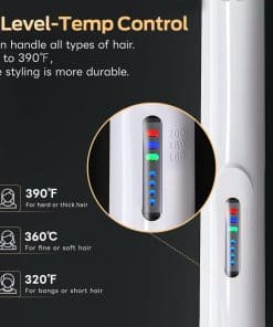 Además, su ajuste de temperatura de 3 etapas te permite adaptarlo a tu tipo de cabello: 390 grados para cabellos gruesos o duros, 360 grados para cabellos finos o suaves, y 320 grados para flequillos o cabellos cortos. Con una batería de gran capacidad de 3200 MAH, este dispositivo ofrece una duración de uso de 30-40 minutos, con un tiempo de carga de 3 horas.
