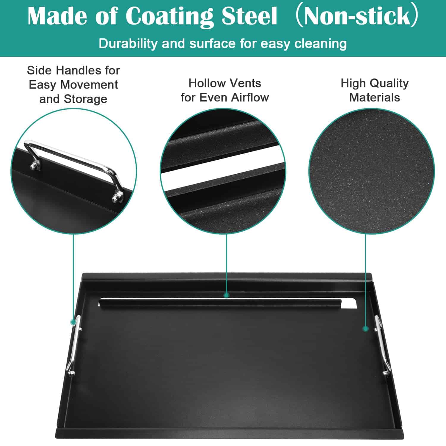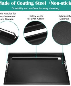 4. Gran área de cocción 15 x 21.7 pulgadas plancha, cocine filetes, pasta, verduras, papas, salteados como desee y disfrute de la barbacoa. Asegúrese de medir el tamaño de su parrilla y compararlo con el nuestro antes de hacer el pedido.