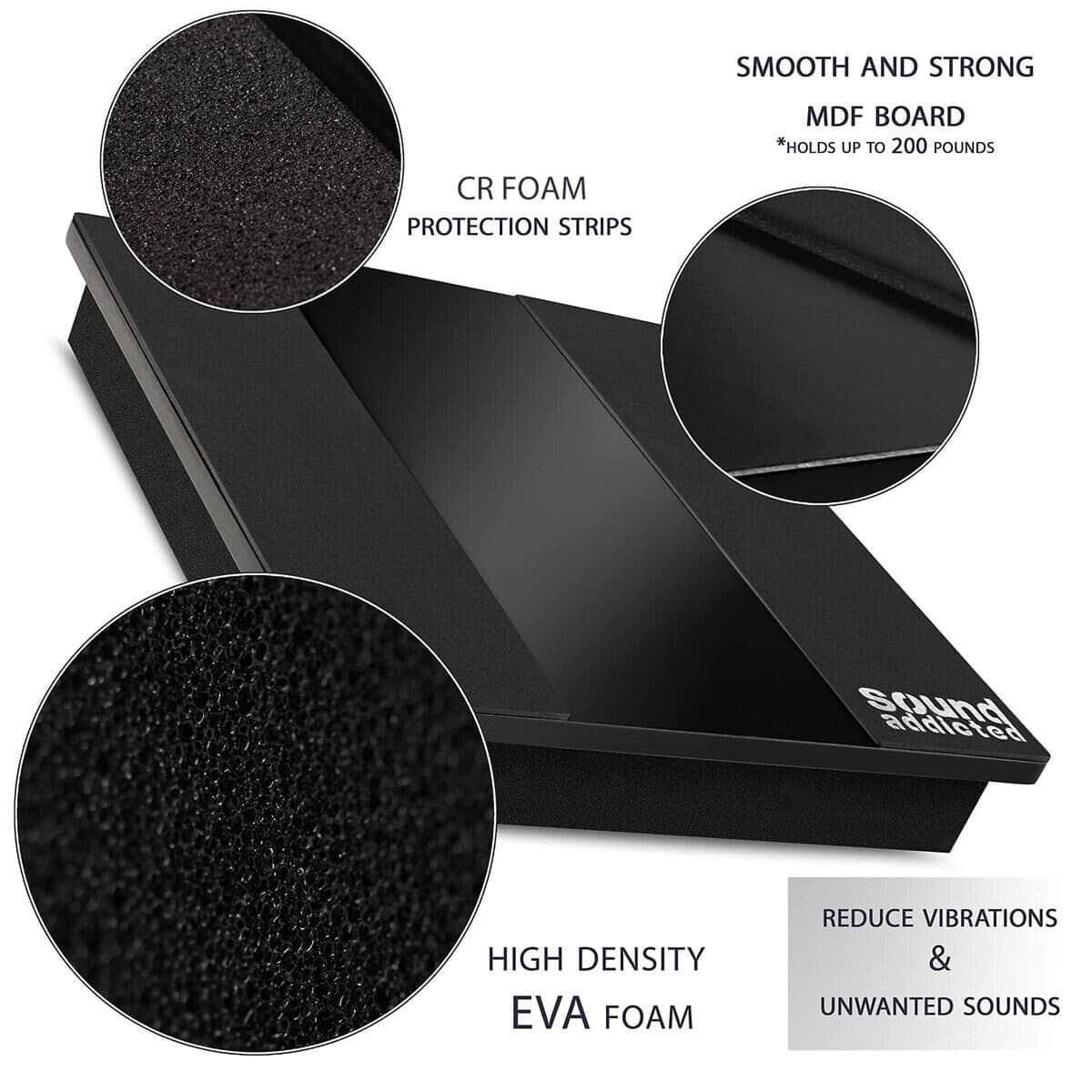 Plataforma de aislamiento Sound Addicted VibeBoss P12 diseñada para subwoofers de 12-15 pulgadas. Hecha de espuma de alta densidad de calidad premium, material de EVA y una resistente tabla de MDF para una estabilidad adicional y un rendimiento óptimo de amortiguación del sonido. Compatible con todos los subwoofers de 12 pulgadas, 13 pulgadas o 14-15 pulgadas. La base antideslizante hace que esta plataforma de subwoofer sea ideal para apartamentos y estudios. Invierta en una almohadilla de aislamiento de altavoz superior de 20″ x 17″ x 3» que resistirá la prueba del tiempo y le ofrecerá un excelente aislamiento acústico y rendimiento de altavoz.