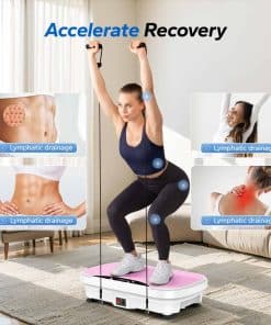 2. Queme grasa y tonifique sin esfuerzo: Transforme su rutina de fitness con la máquina de ejercicio de placa vibrante que hace que quemar calorías y tonificar el cuerpo sea más fácil que nunca. Diseñado para una reducción eficiente de grasa, se dirige a áreas problemáticas y ayuda a perder peso en exceso. Su vibración de cuerpo completo estimula grupos musculares simultáneamente, promoviendo la fuerza y el equilibrio. Ya sea que esté comenzando su viaje de fitness o elevándolo, este dispositivo ofrece resultados de calidad profesional desde la comodidad de su hogar.