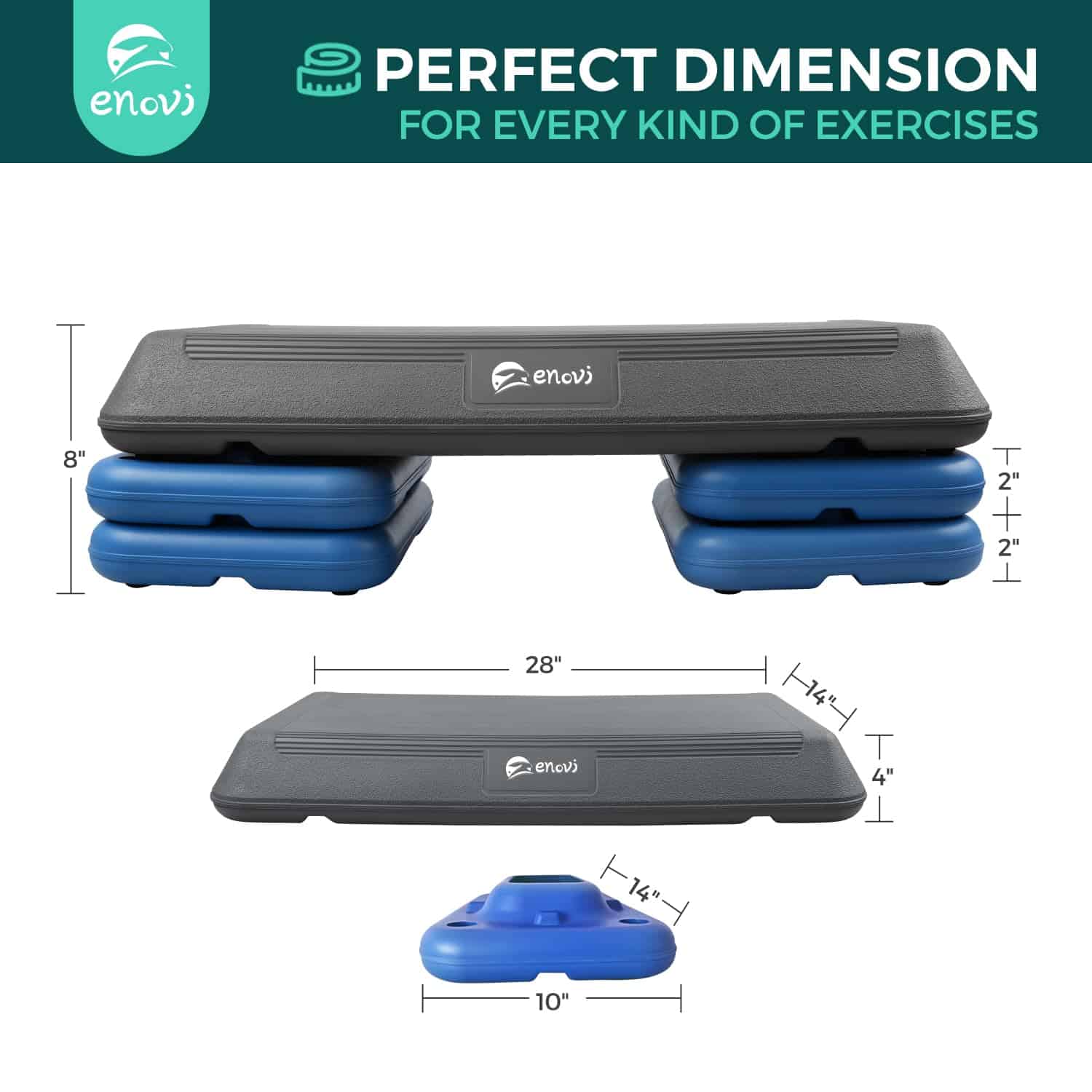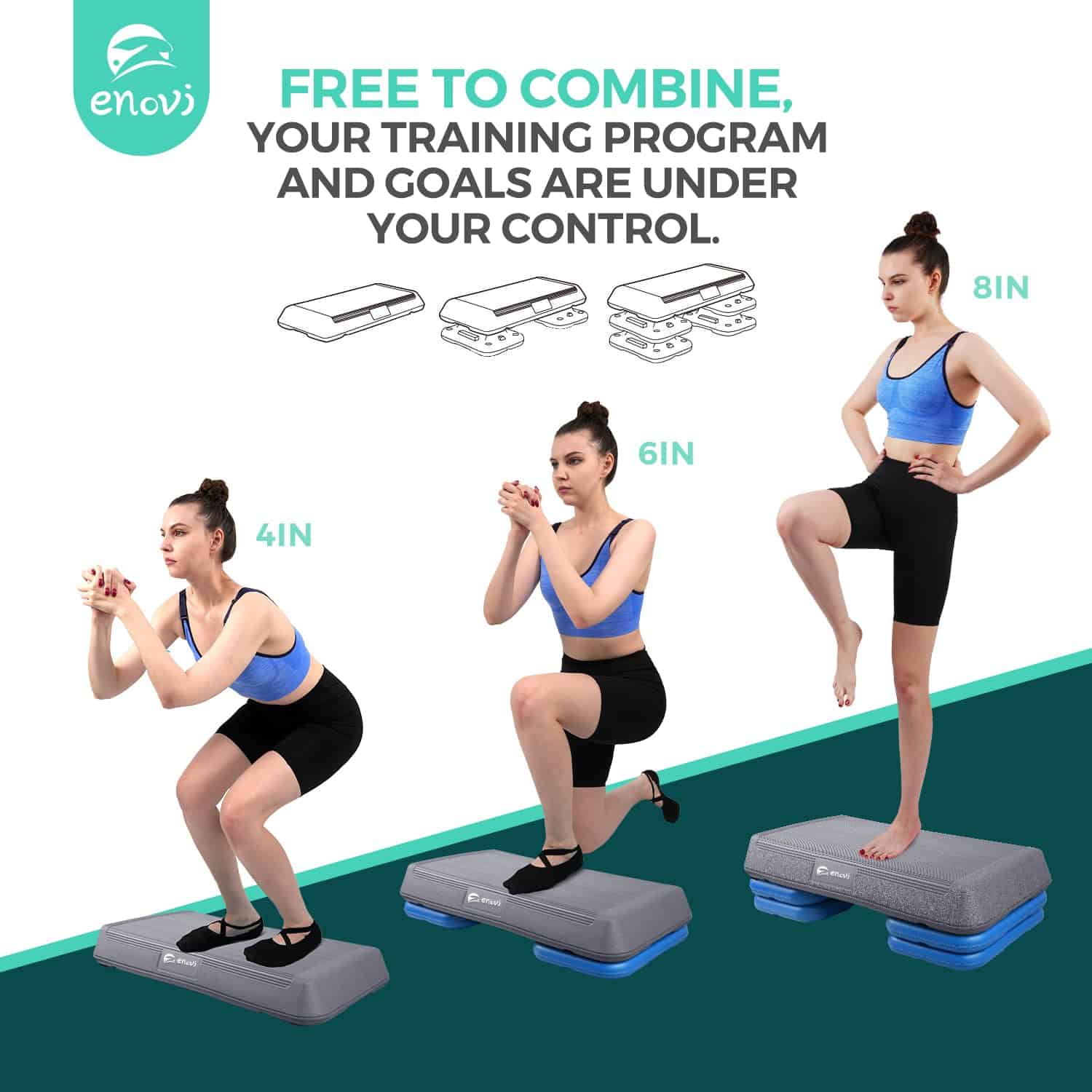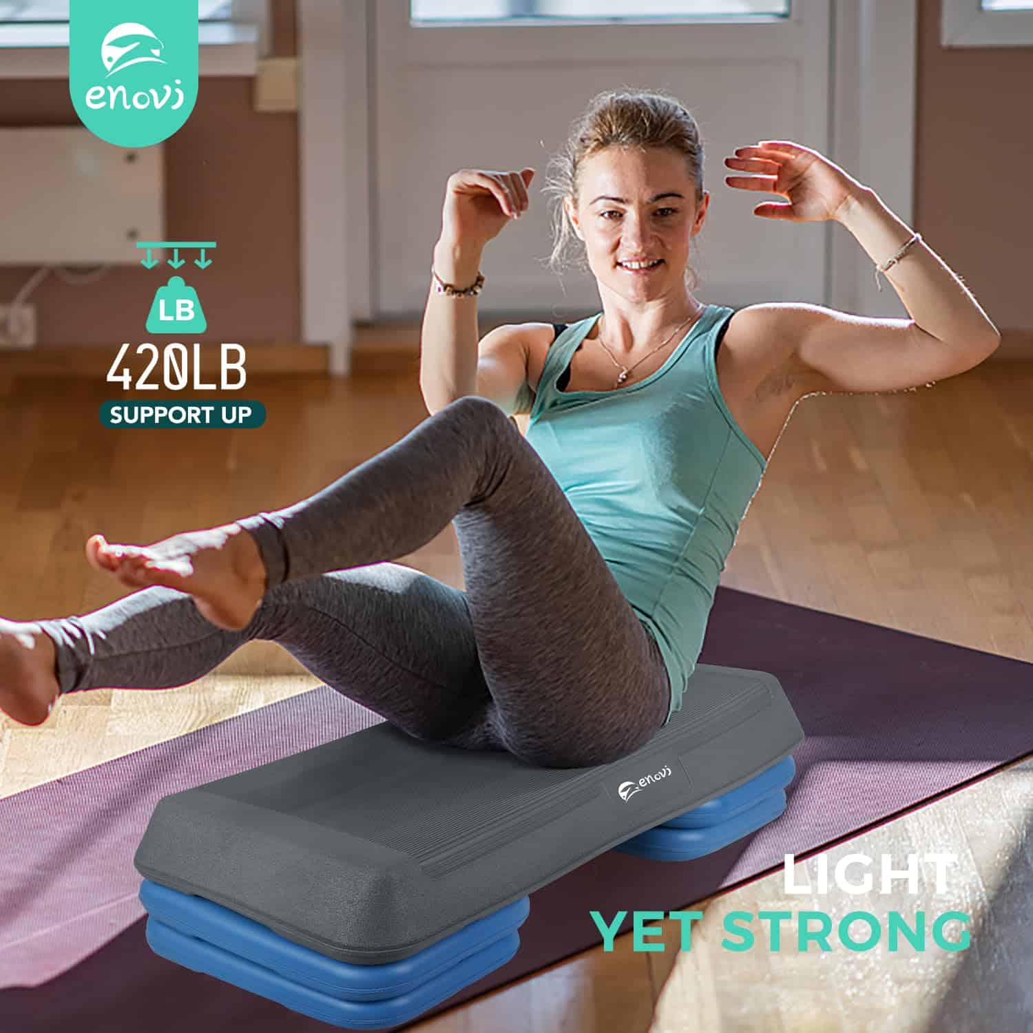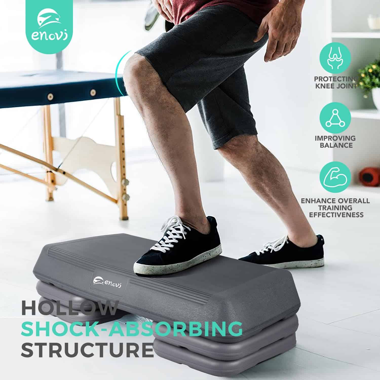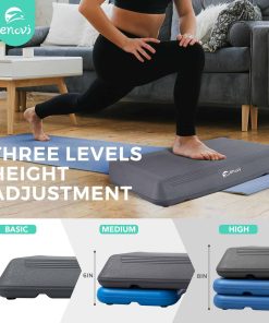 1. Altura Ajustable: La Plataforma de Ejercicio Enovi Step cuenta con un diseño de altura ajustable, lo que la hace adecuada para personas desde principiantes hasta atletas profesionales.