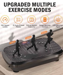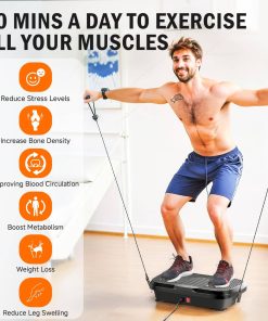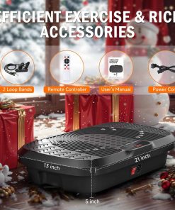 Nuestra plataforma de ejercicio vibratoria proporciona vibraciones corporales completas suaves pero potentes para activar músculos inactivos, mejorar el drenaje linfático, reducir la hinchazón muscular, promover la circulación sanguínea y la regeneración celular. Puede aliviar eficazmente el dolor crónico, relajar articulaciones rígidas, acelerar la reparación de lesiones antiguas, mejorar la flexibilidad y tono muscular, impulsar el metabolismo, aumentar la densidad ósea y reducir los niveles de estrés. Equipada con 1-240 velocidades de vibración, amplitud y frecuencia ajustables, y 10 modos de ejercicio preestablecidos automáticos, nuestra plataforma se adapta a diferentes objetivos y niveles de fitness. Junto con 2 bandas de resistencia y características de vibración, ofrece un entrenamiento de cuerpo completo. La pantalla LED retroiluminada y el control remoto inteligente hacen que la operación sea simple e intuitiva, mientras que el diseño compacto ocupa un espacio mínimo, haciendo que sea adecuado para diversos entornos, como el hogar y la oficina. Fabricada con material ABS resistente y de alta resistencia, nuestra máquina de ejercicio vibratorio soporta una carga máxima de 330 libras. La ventosa antideslizante en la parte inferior garantiza la estabilidad durante el ejercicio y reduce el ruido de vibración (menos de 60 dB), para que puedas usarla con confianza incluso en un entorno doméstico tranquilo. Con un tamaño de 21x13x5 pulgadas, puedes disfrutar de una amplia área de ejercicio para un entrenamiento efectivo. Ofrecemos una garantía de compra segura del 100% para garantizar tu satisfacción con cada uso. Si tienes alguna pregunta, no dudes en contactar a nuestro equipo de servicio al cliente. Cada máquina ha sido rigurosamente probada para que disfrutes de un estilo de vida saludable gracias a equipos de fitness premium.
