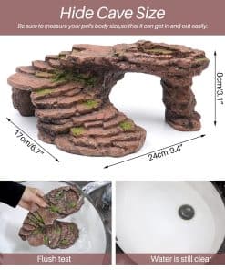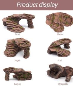 Brindamos un servicio al cliente personalizado y profesional antes y después de su compra; no dude en contactarnos si necesita ayuda con esta cueva de roca para reptiles, le ayudaremos a resolverlos lo antes posible Descripción: Esta cueva para reptiles está hecha de resina pesada, brindando a pequeños reptiles un lugar para meterse adentro. Es una hermosa adición a su terrario o acuario. Características del producto: Hermosas y relajantes formas de escondites que proporcionan un refugio tranquilo; Lugar ideal de escondite que ayuda a reducir los niveles de estrés, maravilloso lugar de escondite para todo tipo de pequeños reptiles y mascotas de bolsillo; Hecha de resina, sumando a la sensación de seguridad para sus mascotas, ya que no se moverá ni flotará cuando se muevan; Especificación: – Material: Resina – Dimensión exterior: 9.4 pulgadas de largo x 6.7 pulgadas de ancho x 3.1 pulgadas de alto – Peso del producto: 2.2 libras Paquete incluye: – 1 x Escondite para Reptiles
