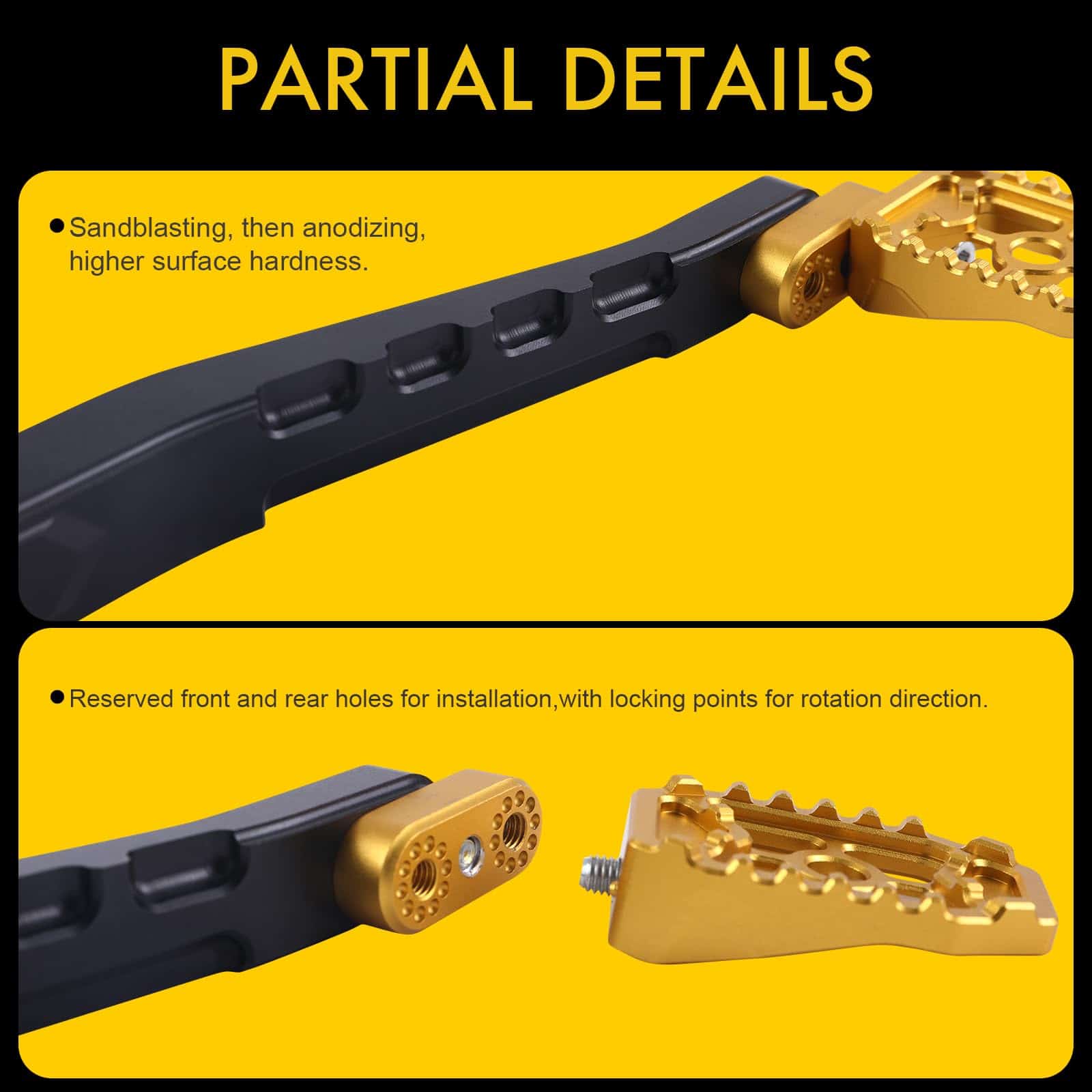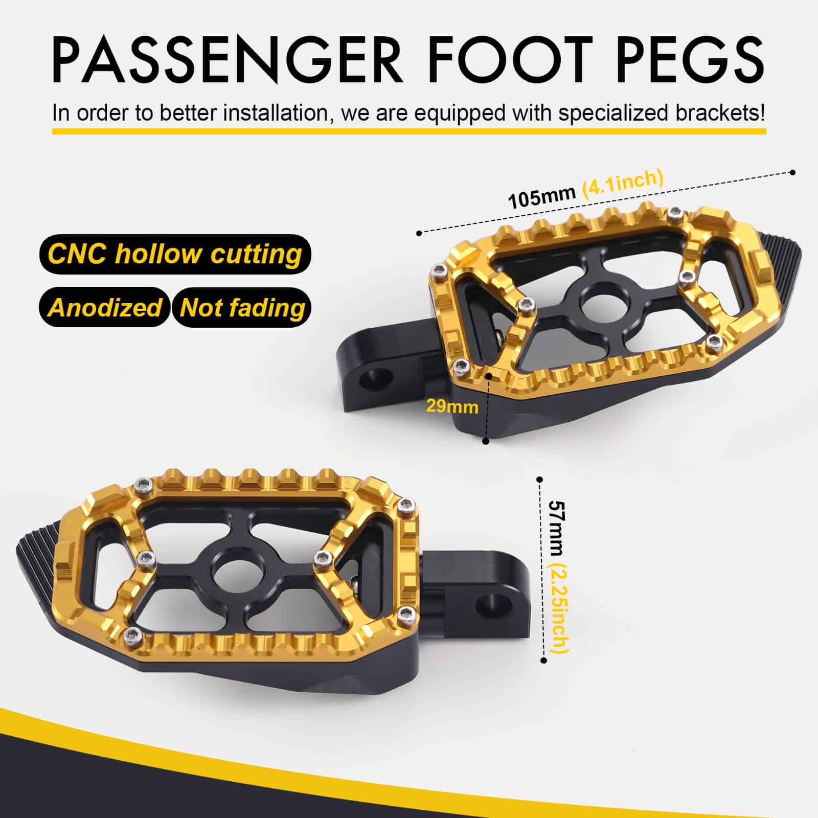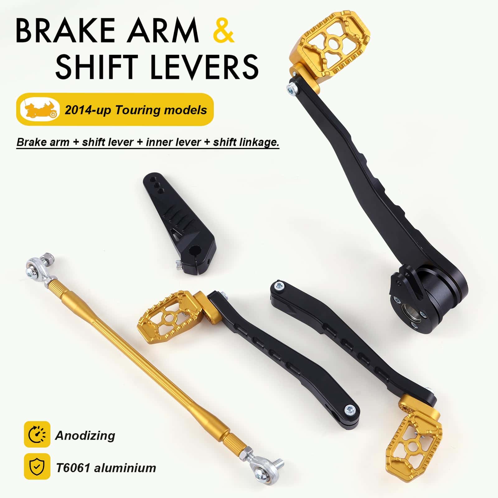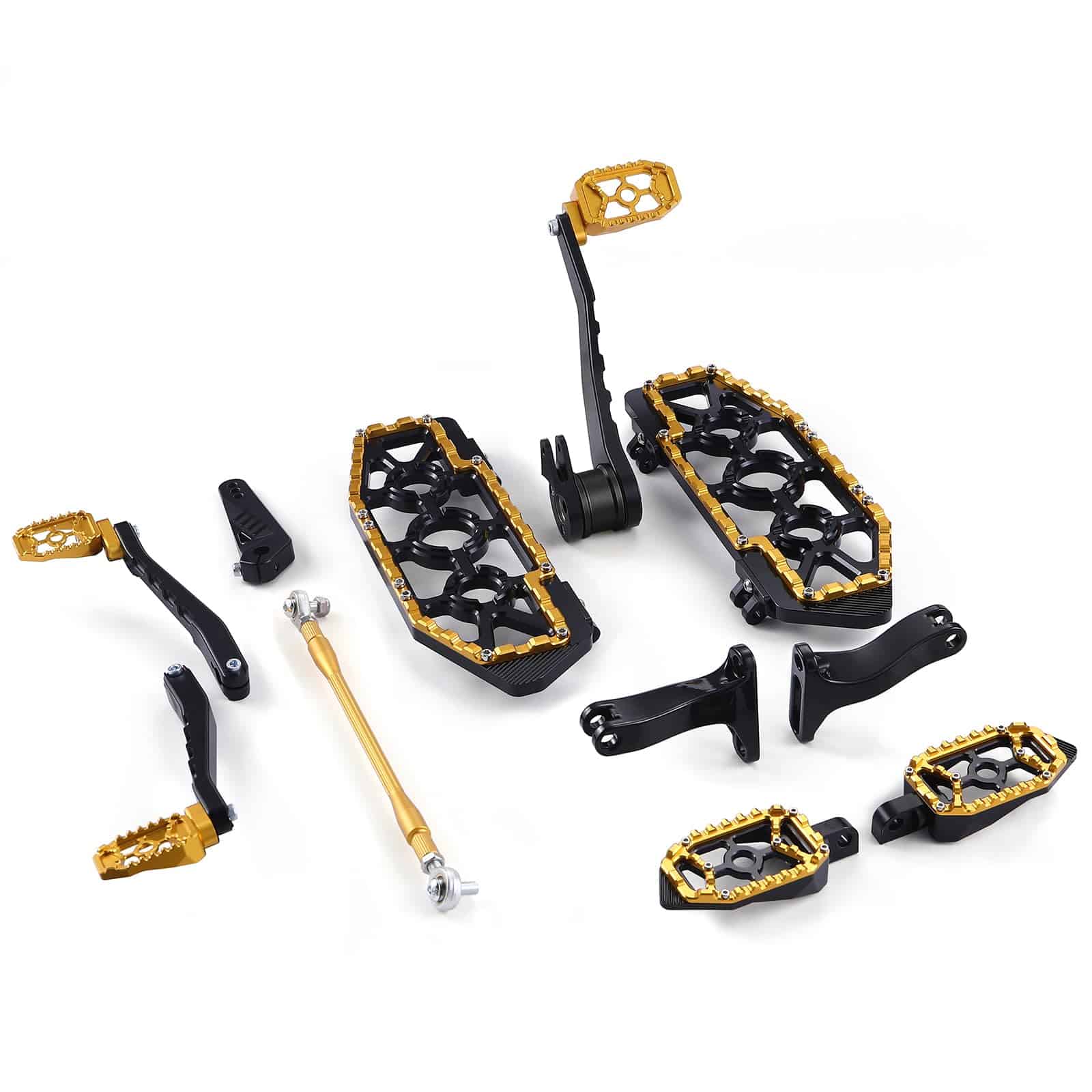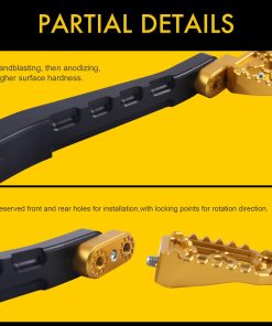 Paquete Incluido: 1 juego de brazo de freno y pedal. 1 juego de palanca de cambio de talón / punta. 1 par de plataformas de piso delanteras para el conductor. 1 par de reposapiés traseros para pasajeros. 1 par de soportes de montaje para reposapiés de pasajeros. 1 varilla de enlace de cambio.