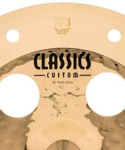 Los platillos Classics Custom de MEINL están diseñados para destacarse sobre el rugido de las guitarras, haciendo la mayor parte del trabajo por ti para que no tengas que tocar tan fuerte para que te escuchen. MEINL utiliza una aleación de bronce B10 para hacer que estos platillos tengan un golpe fuerte y brillante con ricos tonos musicales. El platillo China trash de 18 pulgadas de Classics Custom ofrece un ataque especialmente trashy y sustain con medios dominantes. Este platillo tiene una excelente capacidad para estrellarse y es genial para usar en una pila de platillos para efectos de sonido adicionales. Los platillos Classics Custom se recomiendan para la mayoría de los estilos de música, incluyendo Metal, Rock, Pop, Fusión y Estudio. El limpiador de platillos MEINL (modelo MCCL) funciona muy bien para restaurar y mantener el brillo en estos platillos con acabado brillante.