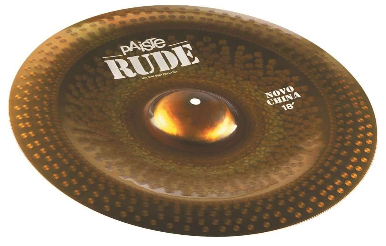 Sonido: Brillante, sedoso, metálico, completo, ligeramente sucio y muy potente. Amplio rango, mezcla bastante limpia. Sensación cómoda, receptiva y algo suave. Tipo de china exótico que también ofrece el sonido y la función de un platillo de crash. Su forma única hace que tanto el borde de la campana como el borde de la china descendente sean accesibles al mismo tiempo. Ofrece un sonido china potente, sizzling y profundo en capas que se adapta perfectamente a cualquier estilo de música Rock y a otras aplicaciones únicas y configuraciones percusivas. El Platillo Novo Rude de Paiste ofrece un sonido brillante, sedoso, metálico, completo, ligeramente sucio y muy potente. Tiene un amplio rango y mezcla bastante limpia. Sensación cómoda, receptiva y algo suave. Tipo de china exótico que también ofrece el sonido y la función de un platillo de crash. Su forma única hace que tanto la campana como el borde de la china descendente sean accesibles al mismo tiempo. Para aplicaciones únicas y configuraciones percusivas. Introducción: 1980 Antecedentes: El platillo Rude Novo se creó como respuesta a los desarrollos extremos en Heavy Metal y Punk que requerían poder de corte y volumen extremo – RUDE se relanzó como 3000 RUDE, luego 2002 RUDE y regresa a su nombre clásico RUDE en 1999 – En 2005 la serie RUDE se expande con la introducción de modelos de Thin Crash, aportando más control y sofisticación a esa serie Innovación: Primera serie de platillos sin torneado que presenta un grosor uniforme e ingeniería de sonido para competir con frecuencias y niveles de volumen extremos de rango medio Aleación: Bronce CuSn8, también conocido como Bronce 2002 Calidad: Profesional Producción: Artesanía manual – Martilleo a mano Aplicaciones: Medio fuerte a muy fuerte – En vivo y grabación – Punk, Heavy Metal, derivados de Metal Moderno y estilos contemporáneos enraizados en esos estilos o similares Usuarios: Músicos profesionales, entusiastas – Todos los músicos que necesitan energía cruda y poder de corte extremo sin sacrificar el sonido musical del platillo Sonido: Crudo, animado, brillante, enérgico, con armónicos de rango medio pesados y poderosos.